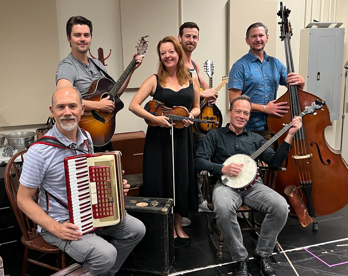 From left, Nathan Perry, Brandon Alstott, Sarah Hund, Matt McClure, Kent M. Lewis and Jordan Simmons appear in “Ring of Fire.” (Photo by Mark Ambrogi)