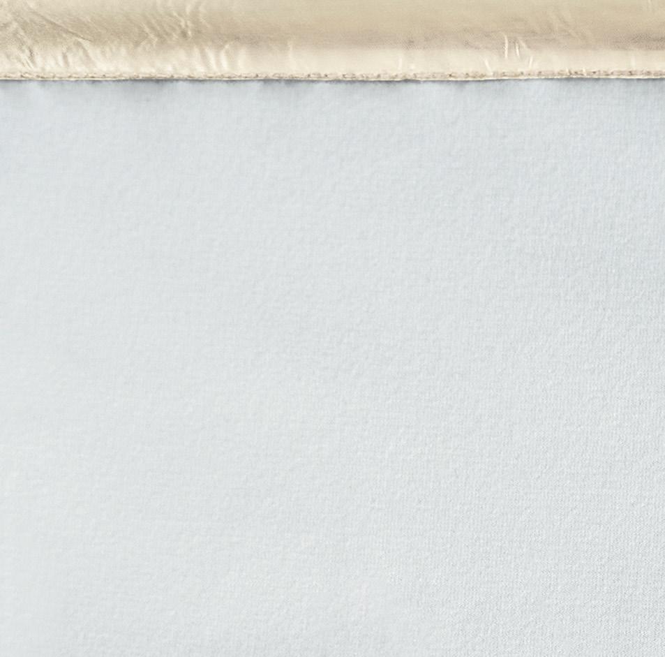 • White cabinetry, a matching backsplash and quartz counters keep the space bright and airy, complemented by the warmth of hardwood floors and a soft, pale blue on the island.