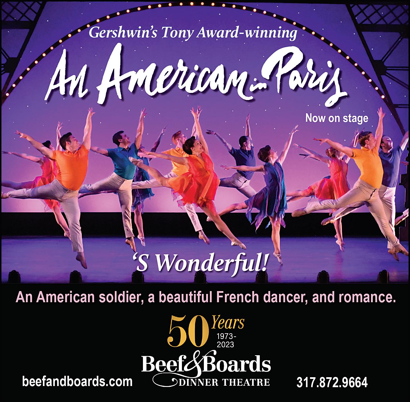 “An American in Paris” runs through May 14 at Beef & Boards Dinner Theatre in Indianapolis. For more, visit beefandboards.com.