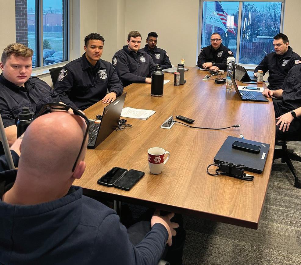 In 2022, the Zionsville Fire Dept. received a Federal Emergency Management Agency SAFER grant of $1.6 million for the hiring of six firefighters. The recruits are in training and have started the 18-week recruit academy. The academy includes six weeks of training to become emergency medical technicians, one week of hazardous materials and 11 weeks of intense firefighting training resulting in certifications in those fields. The recruits will graduate in August and join the ZFD as probationary firefighters. From left, Trey Cobb, Jonathon Rollins, Austin Alcorn, Xavier Davis, Tyresse Schaffer, Jesse Felmy and Trent Thomas. (Photo courtesy of Zionsville Fire Dept.)