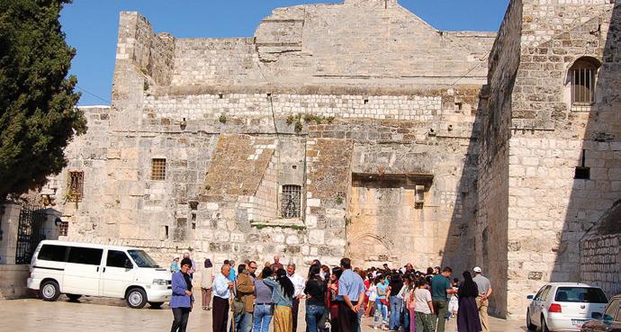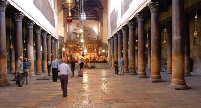 According to the Gospels of Matthew and Luke, Jesus was born in Bethlehem. After Emperor Constantine declared that Christianity was legal in the Roman Empire, he sent his mother Helena to the Middle East to identify Christian sites. She concluded that Jesus had been born in a cave in Bethlehem beneath a temple to Adonis. Constantine demolished the temple and replaced it with a church, dedicated in A.D. 339. Emperor Justinian rebuilt the Church of the Nativity in its current form in A.D. 565, making it the oldest church in the world. A star in the cave beneath the church marks what some believe is the stone where Mary lay while delivering Jesus.