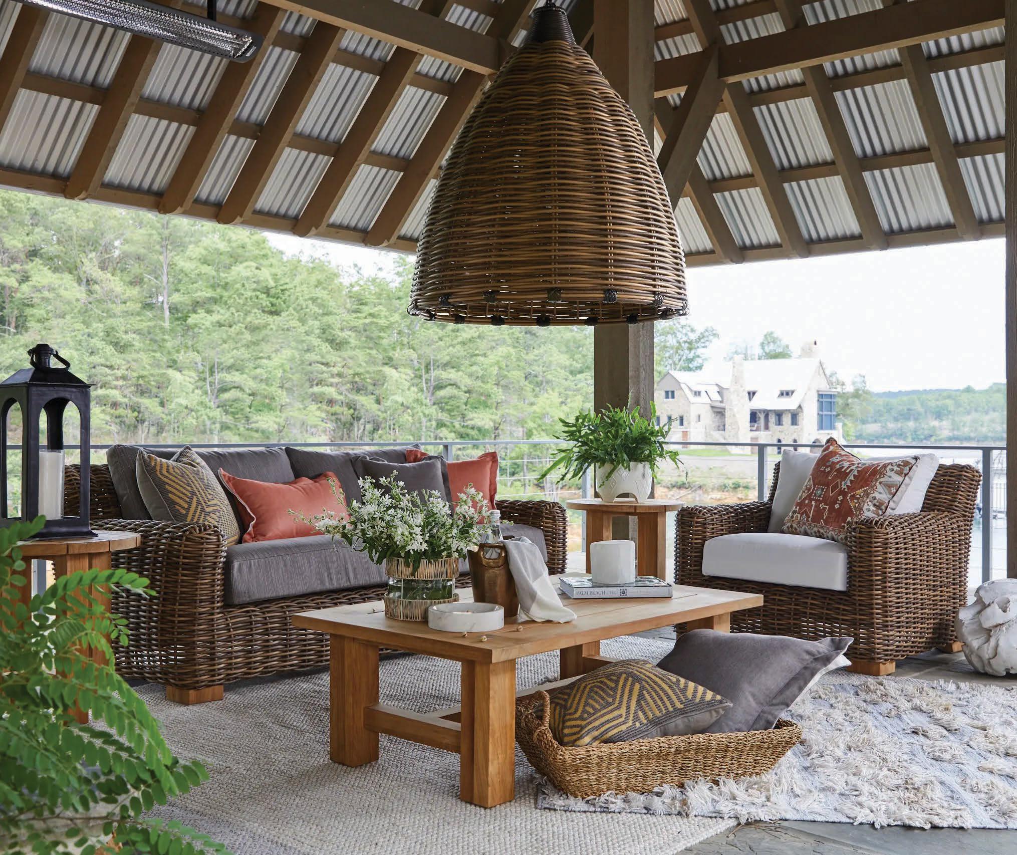 • Organic warmth is introduced through wood barstools, seagrass dining chairs and iron accents.