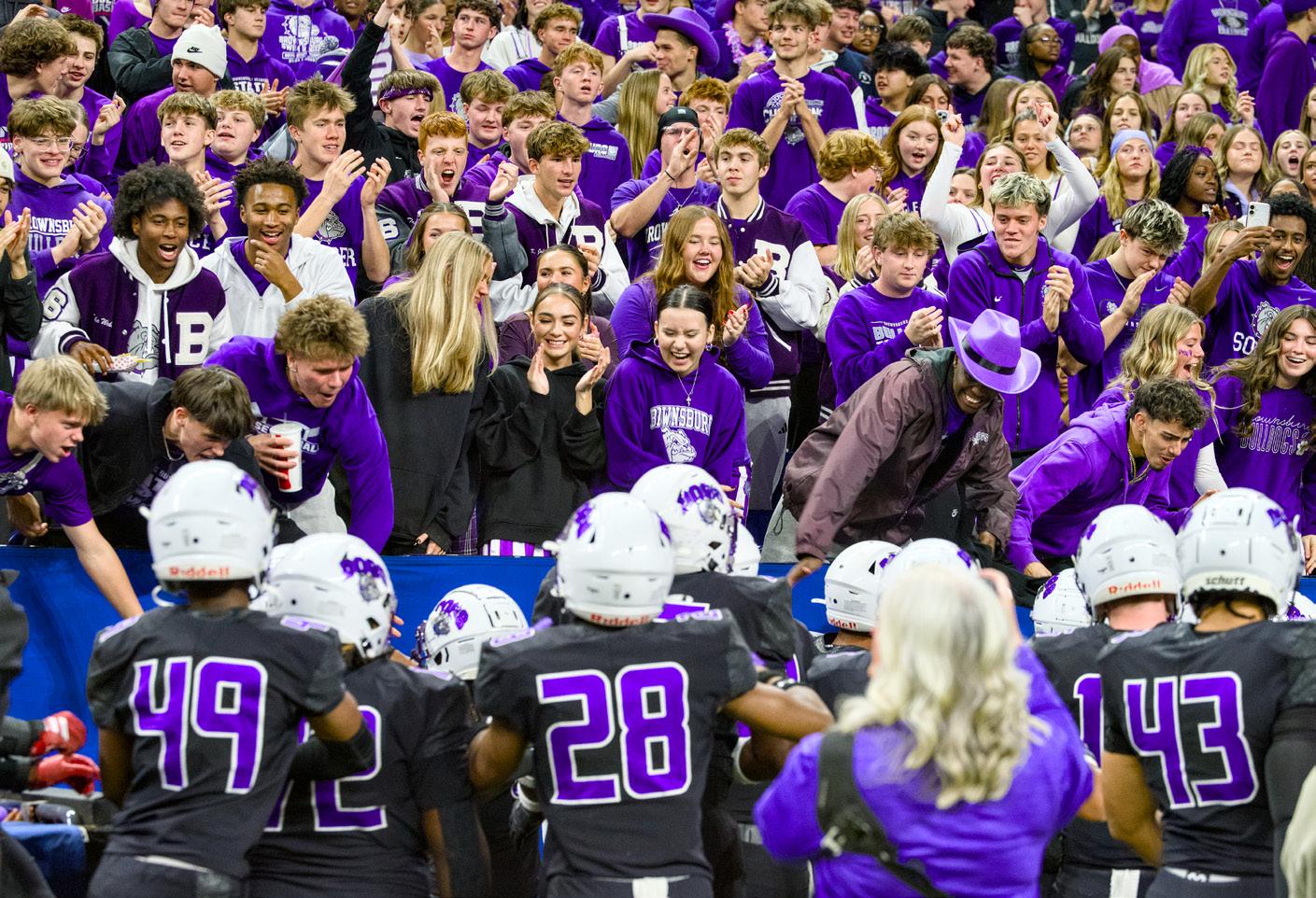 Brownsburg fans cheer on their Bulldogs at Lucas Oil Stadium. (Photo by Kelly Sullivan)