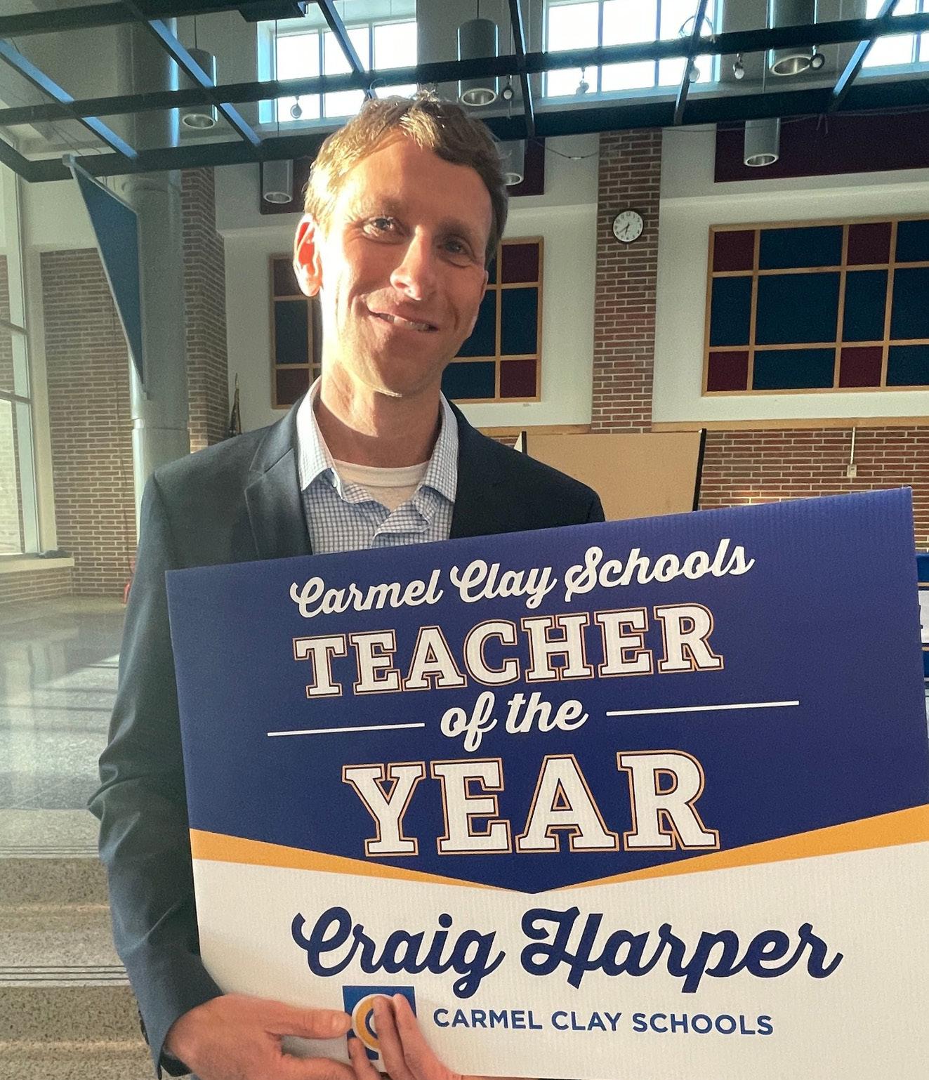 Craig Harper is the 2025 Carmel Clay Schools Stephen A. Backer Teacher of the Year. Harper is known for his calm presence and bringing a conversational style to his classroom, according to coworkers and students who shared their thoughts in a video presented at the May 19 CCS school board meeting. See the video at y2u.be/X6dC_0bgr-o.