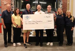 From left, Dan Moriarity, founding principal, Studio M Architecture & Planning; Brian Simons, senior vice president, Skender; Shannon Minnaar, Carmel City Councilor; Mayor Sue Finkam; Ghahramaan the dog; Dr. Soori Ardalan; Dr. Abdolaziz Ardalan and Henry Mestetsky, Carmel Redevelopment Commission executive director. (Photos courtesy of the City of Carmel)