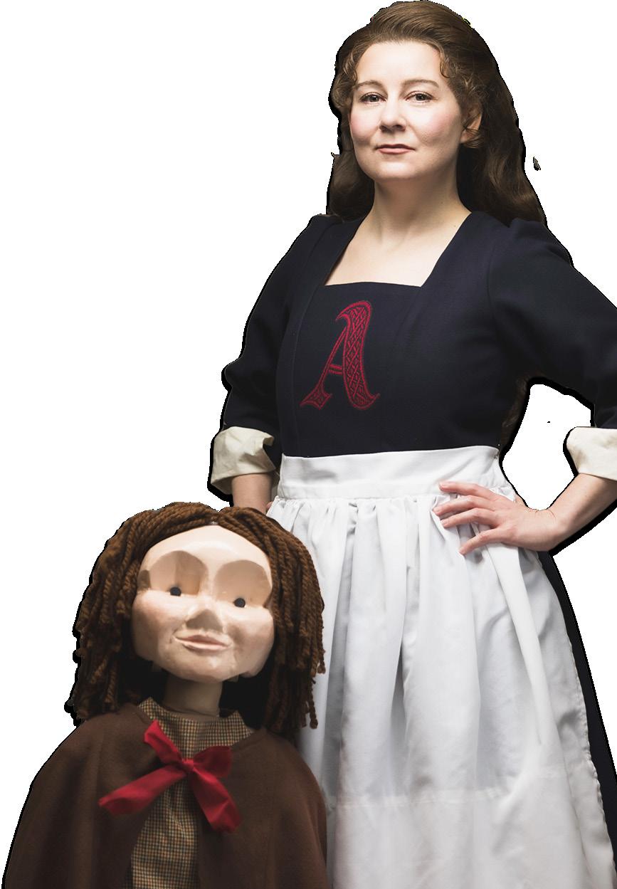 Puppeteer Emily Bohannon, left, and Brittany Magee examine Pearl, a puppet. Magee plays the role of her Pearl’s mother, Hester Prynne in “The Scarlet Letter.” (Photo courtesy of Civic Theatre)