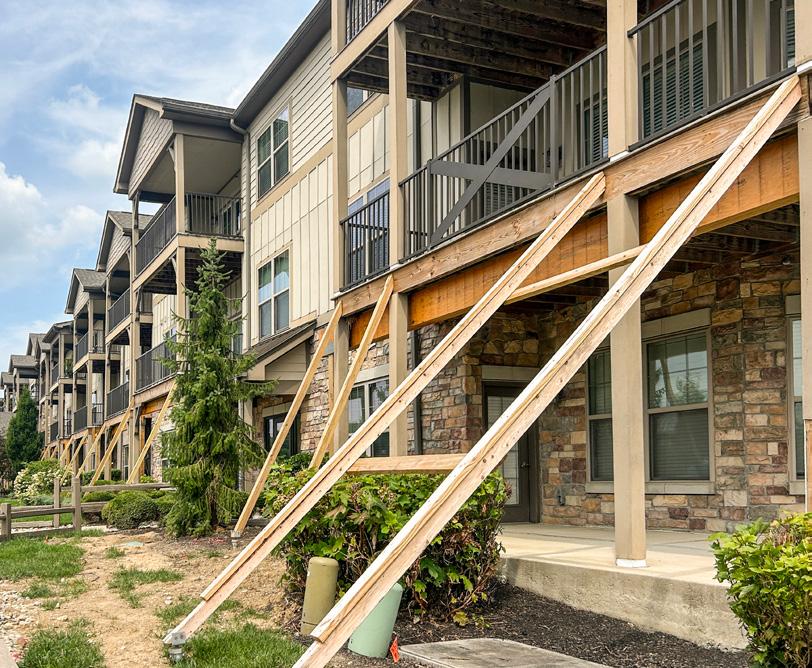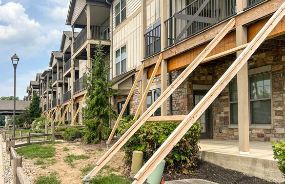 For the last several months, one of the most visible apartment buildings at The Seasons of Carmel has been surrounded by wooden beams attached diagonally to the structure.