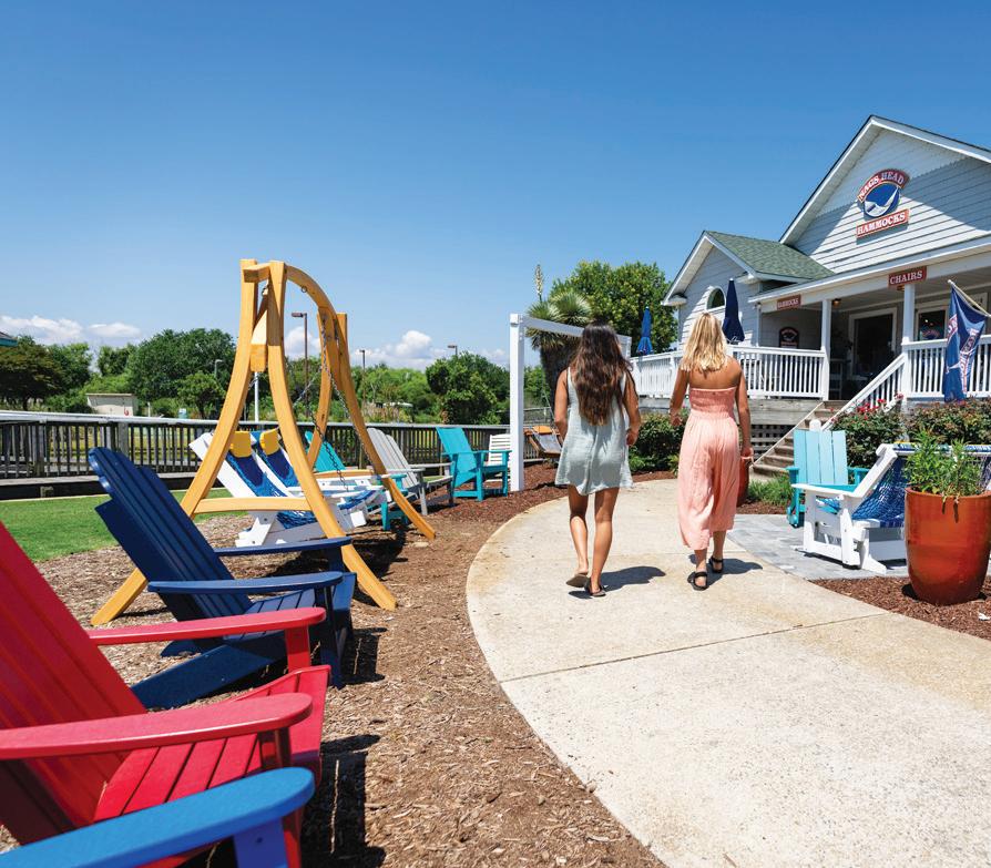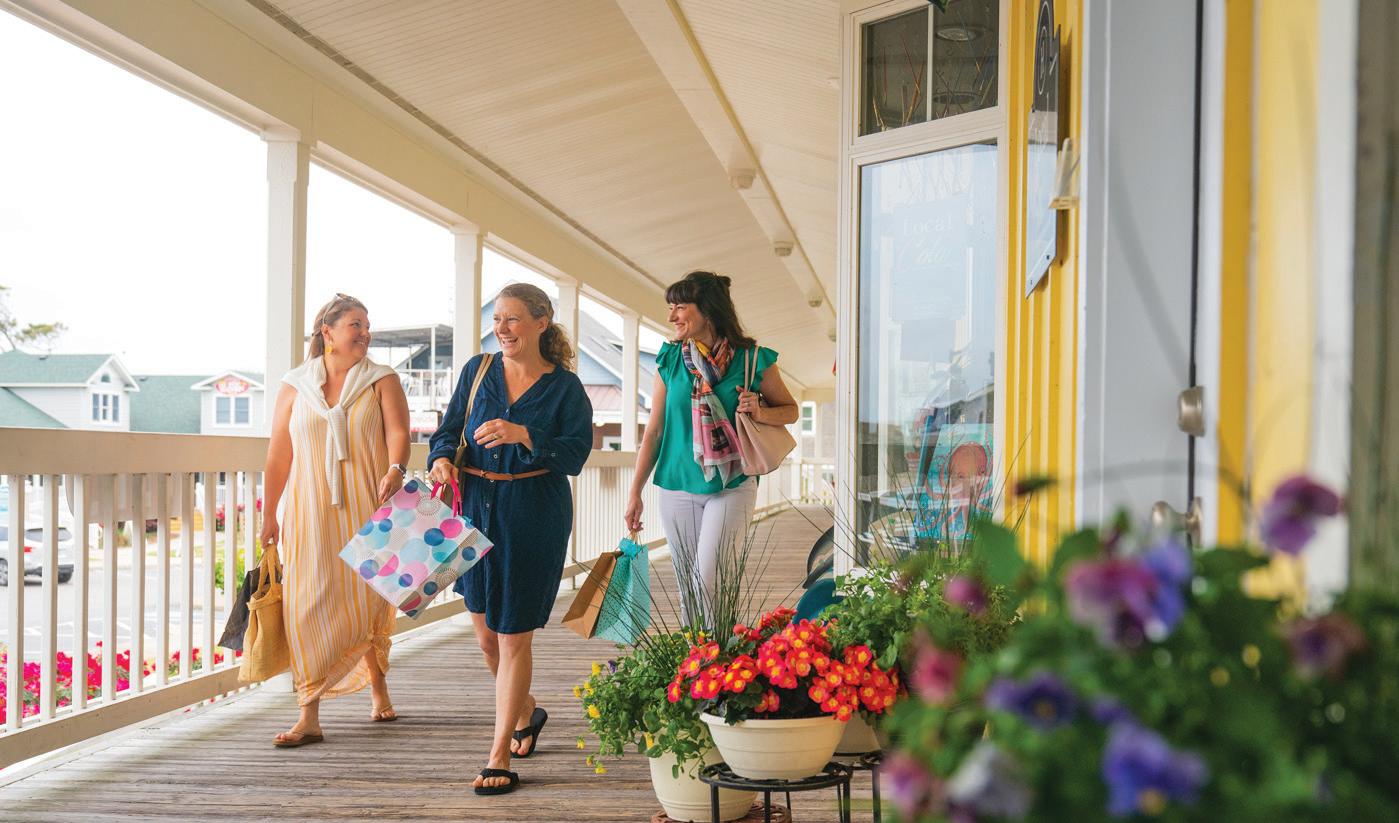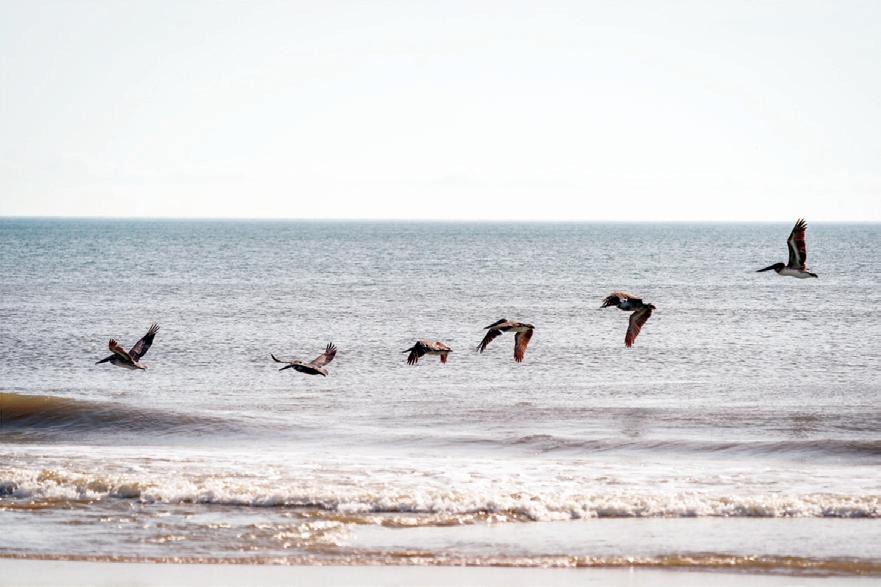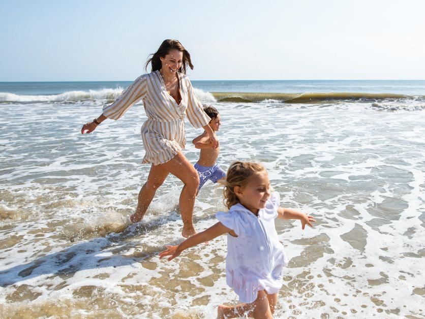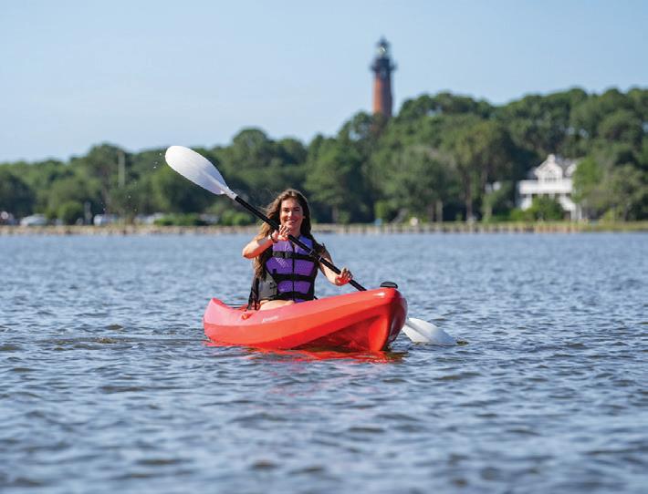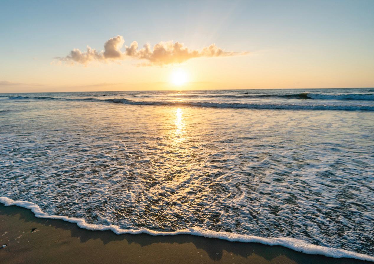 ticket to such a beach vacation. Hop on this highway in Kitty Hawk and head north, where you’ll pass into Currituck County, home of The Northern Outer Banks beaches. You’ll pass the communities of Pine Island, Ocean Sands, Whalehead Beach, Buck Island, Ocean Hill, Corolla Light and more, plus shops, restaurants, and outfitters aplenty, to reach Historic Corolla Village, the historic center of the beaches and home to the Currituck Beach Lighthouse. If you have a fourwheel-drive vehicle, keep heading north along N.C. Highway 12. The paved highway turns to sand and stretches 11 more miles up to the NC/VA border. This beach area, with no paved surfaces and no commercial businesses, is wild and remote, home to the famous Corolla Wild Horses and a favorite 4x4 beach destination.
