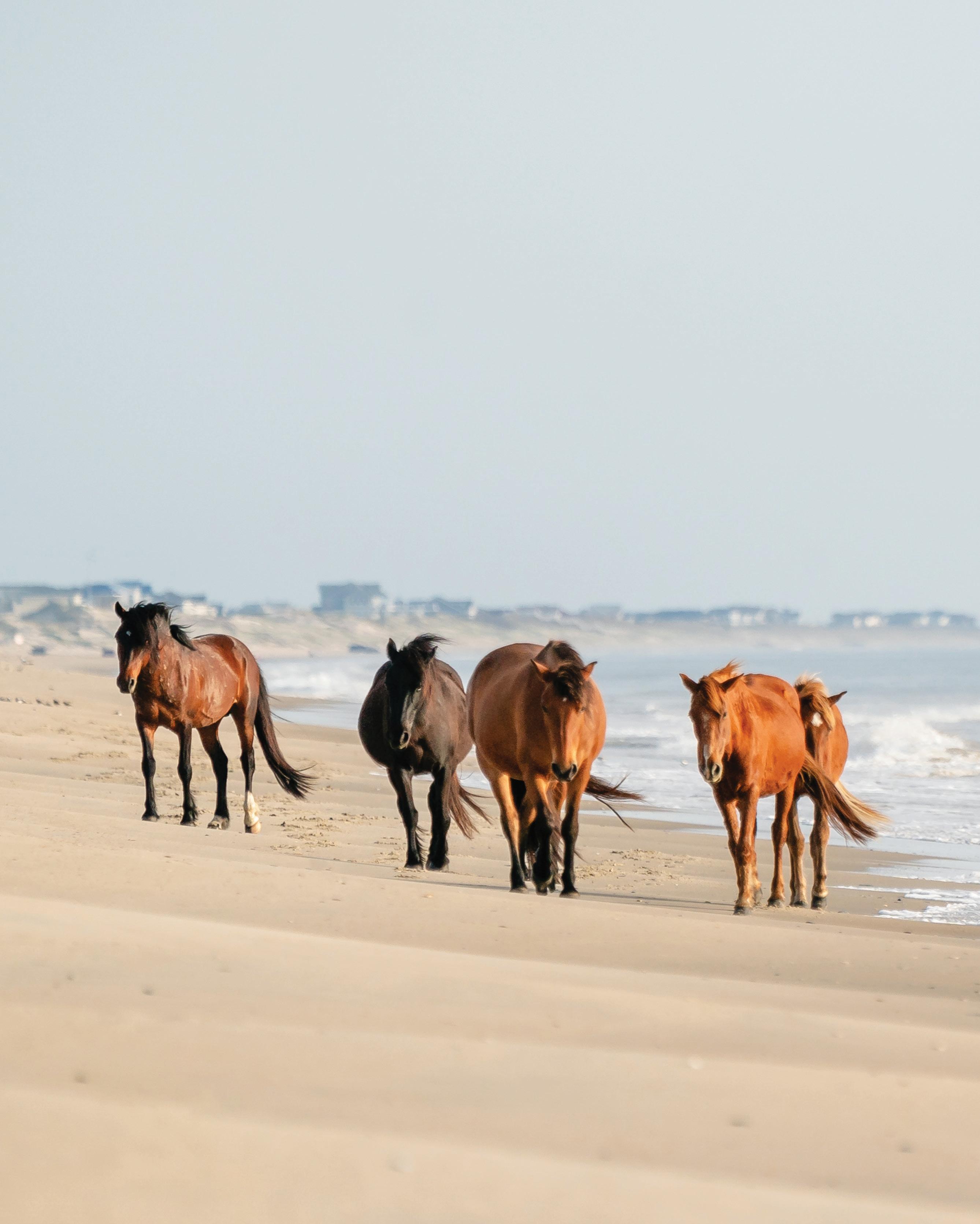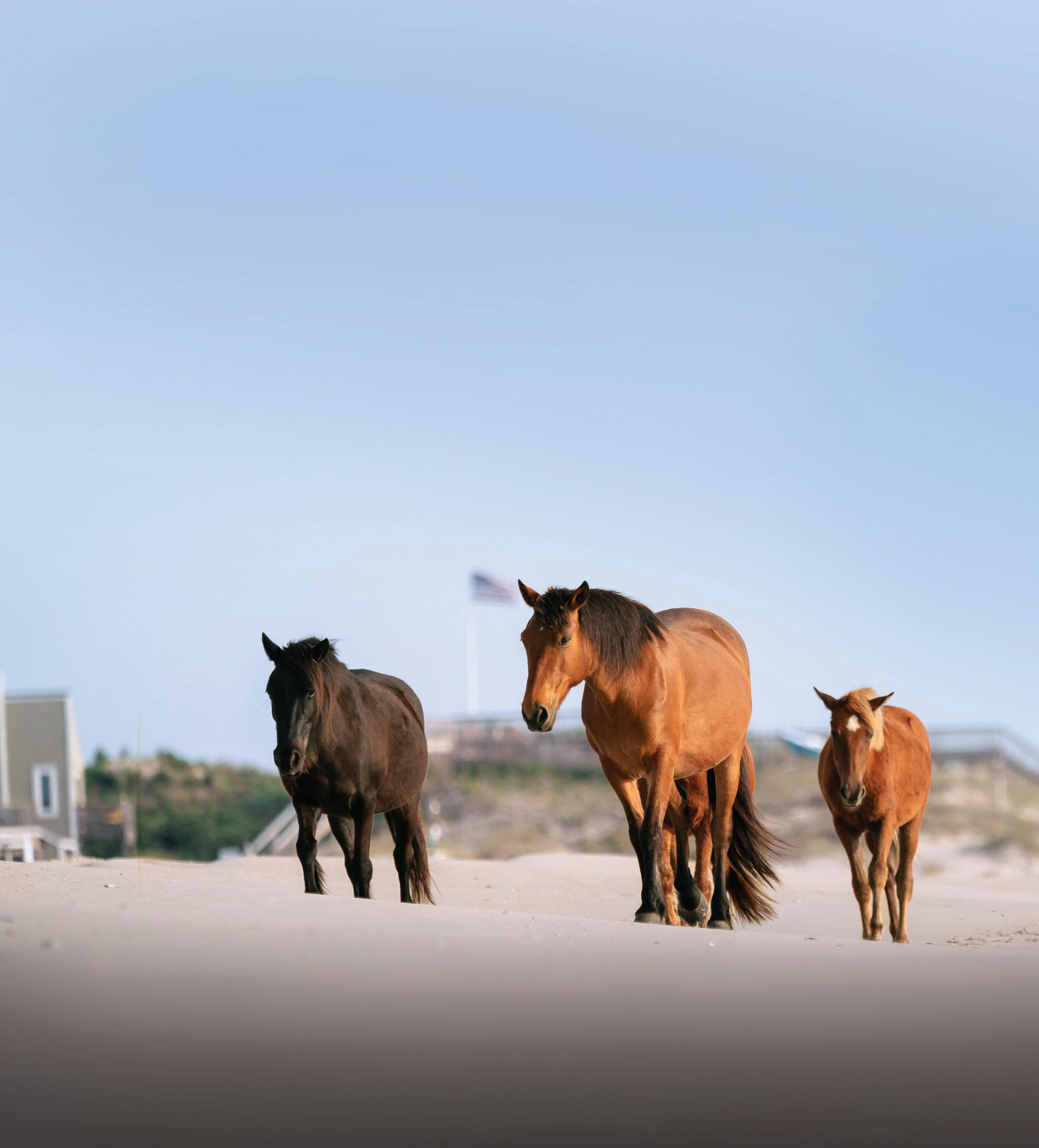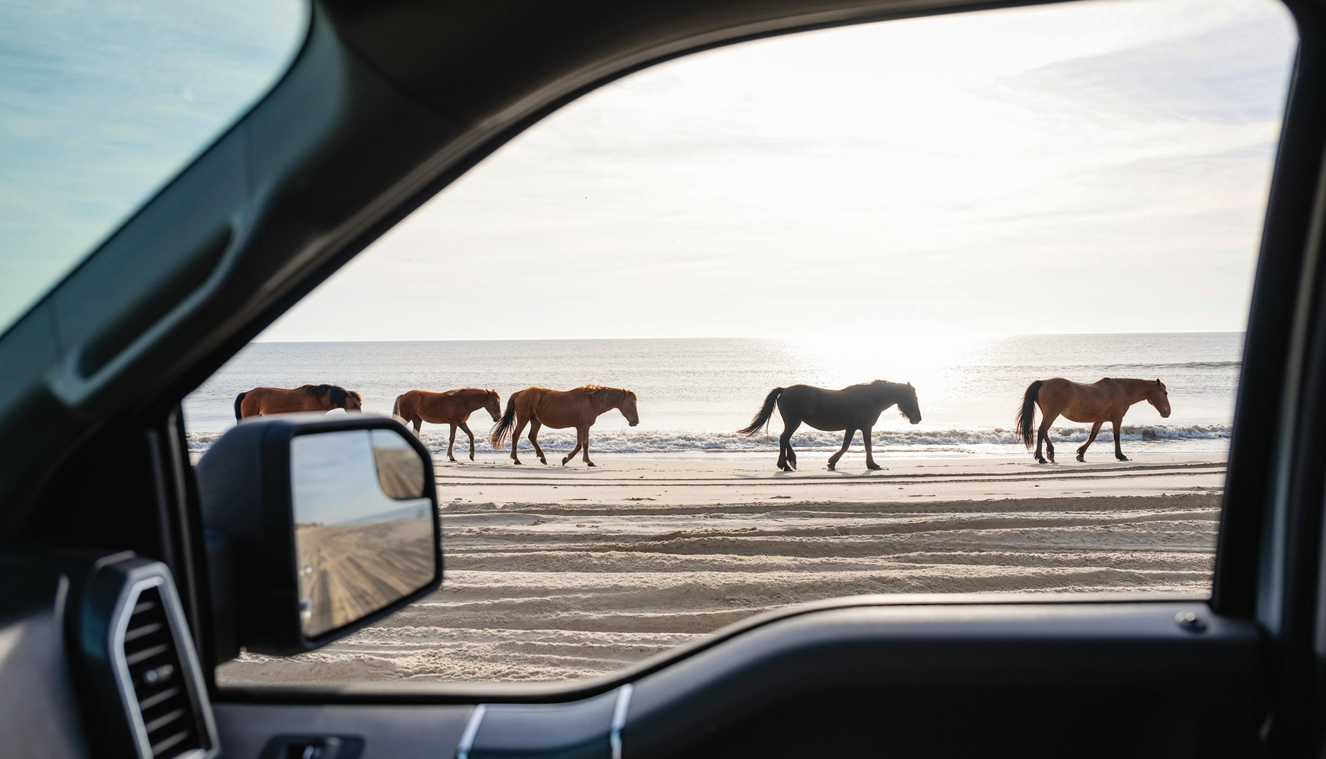 No pavement. No stores. No gas stations, restaurants, or Ubers. On the wide beaches and soundside of the four-wheel-drive area north of Corolla, it’s nothing but wild horses, wildlife, beach houses, and the ocean. This stretch of beach is the realm of self-sufficient solitude seekers, vacationers who appreciate a remote, edge-of-the-world vibe, and wild horse tours.
