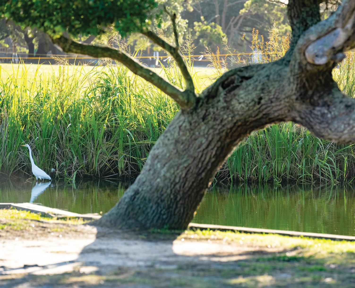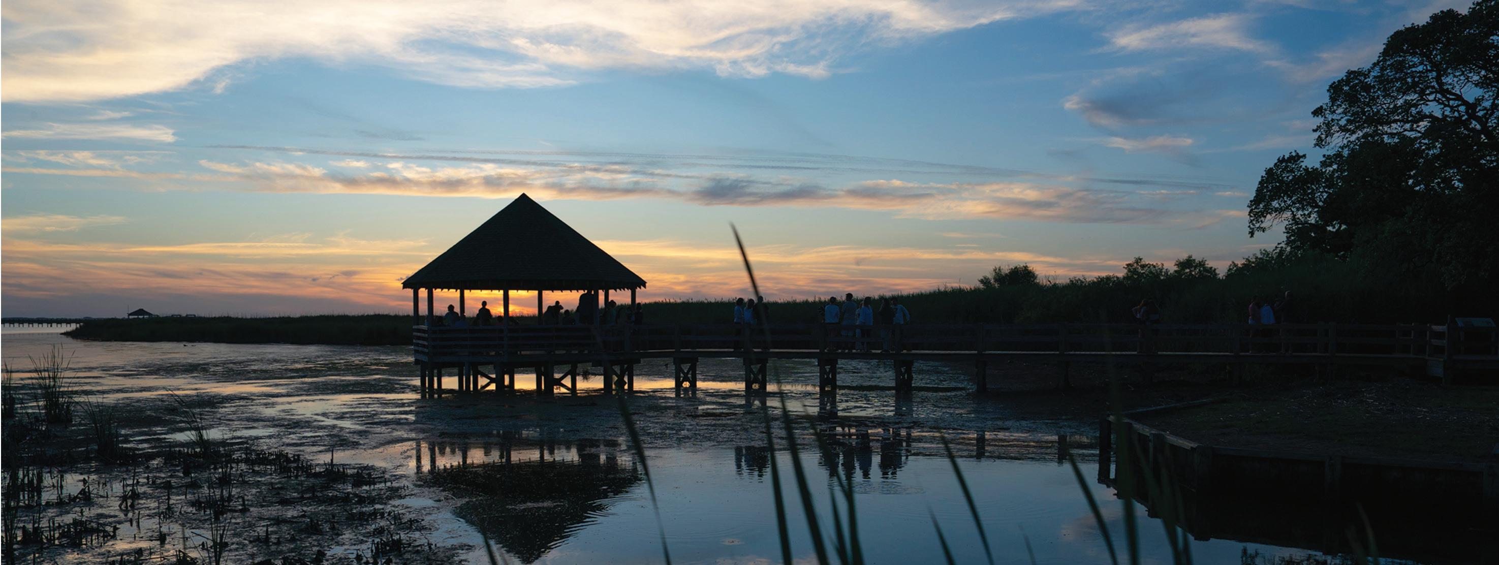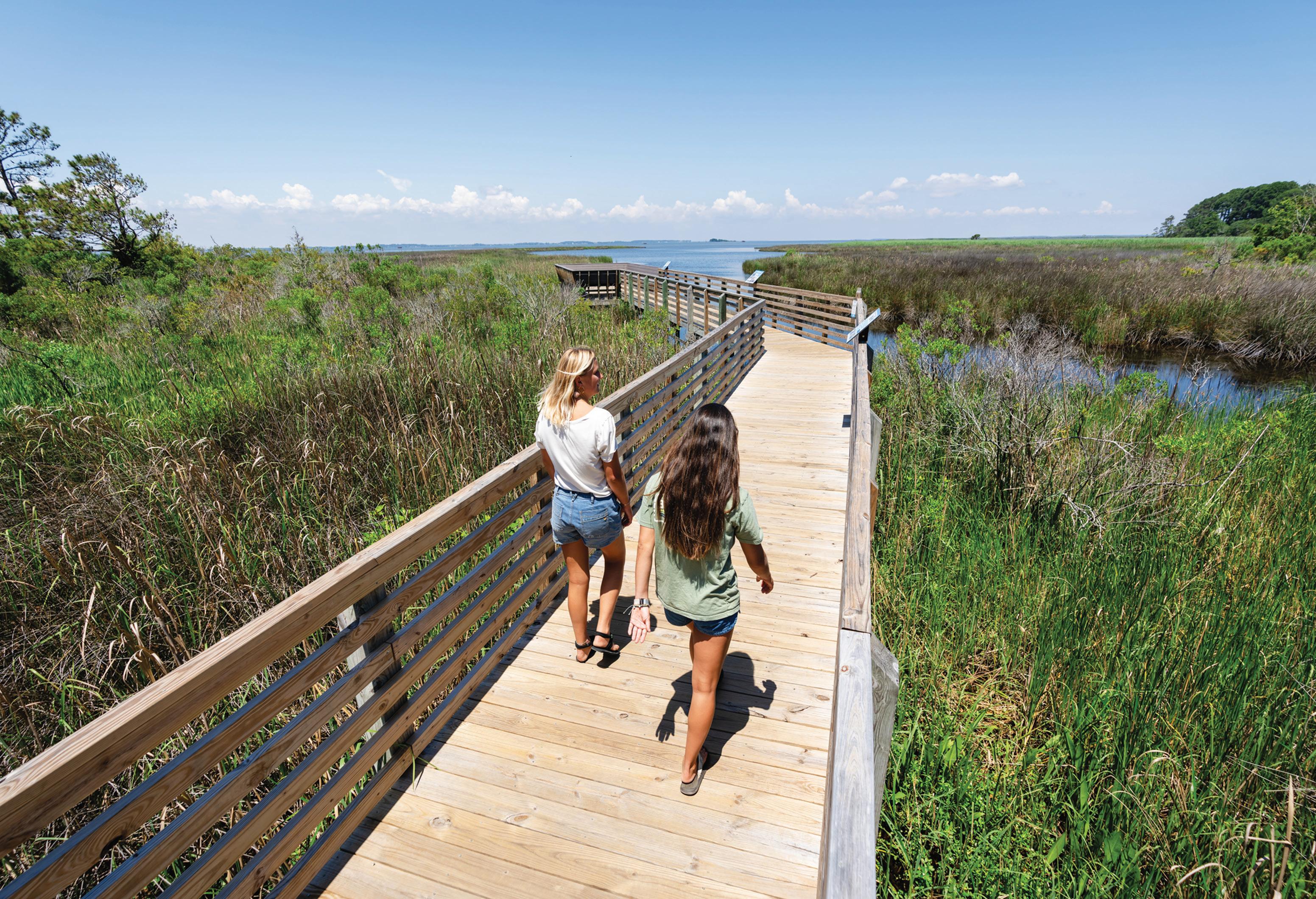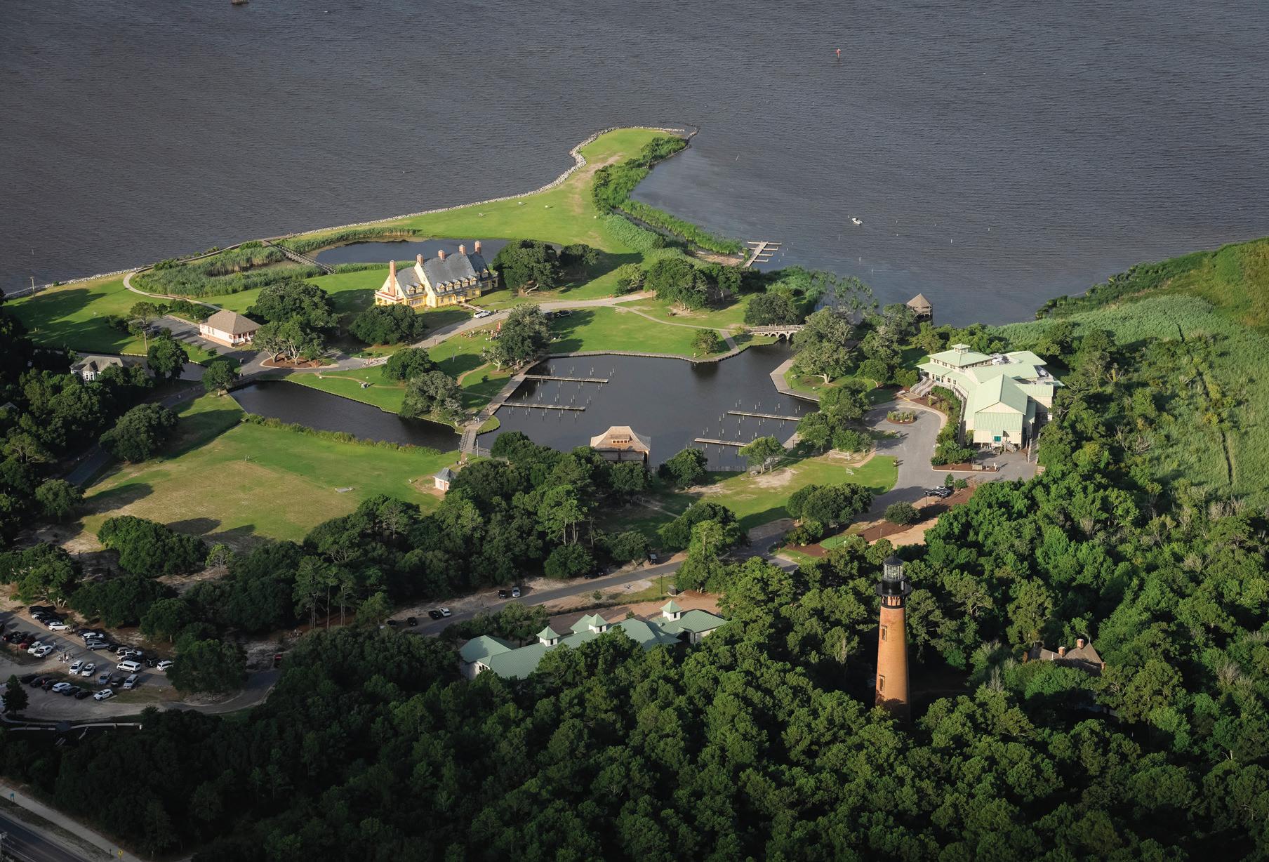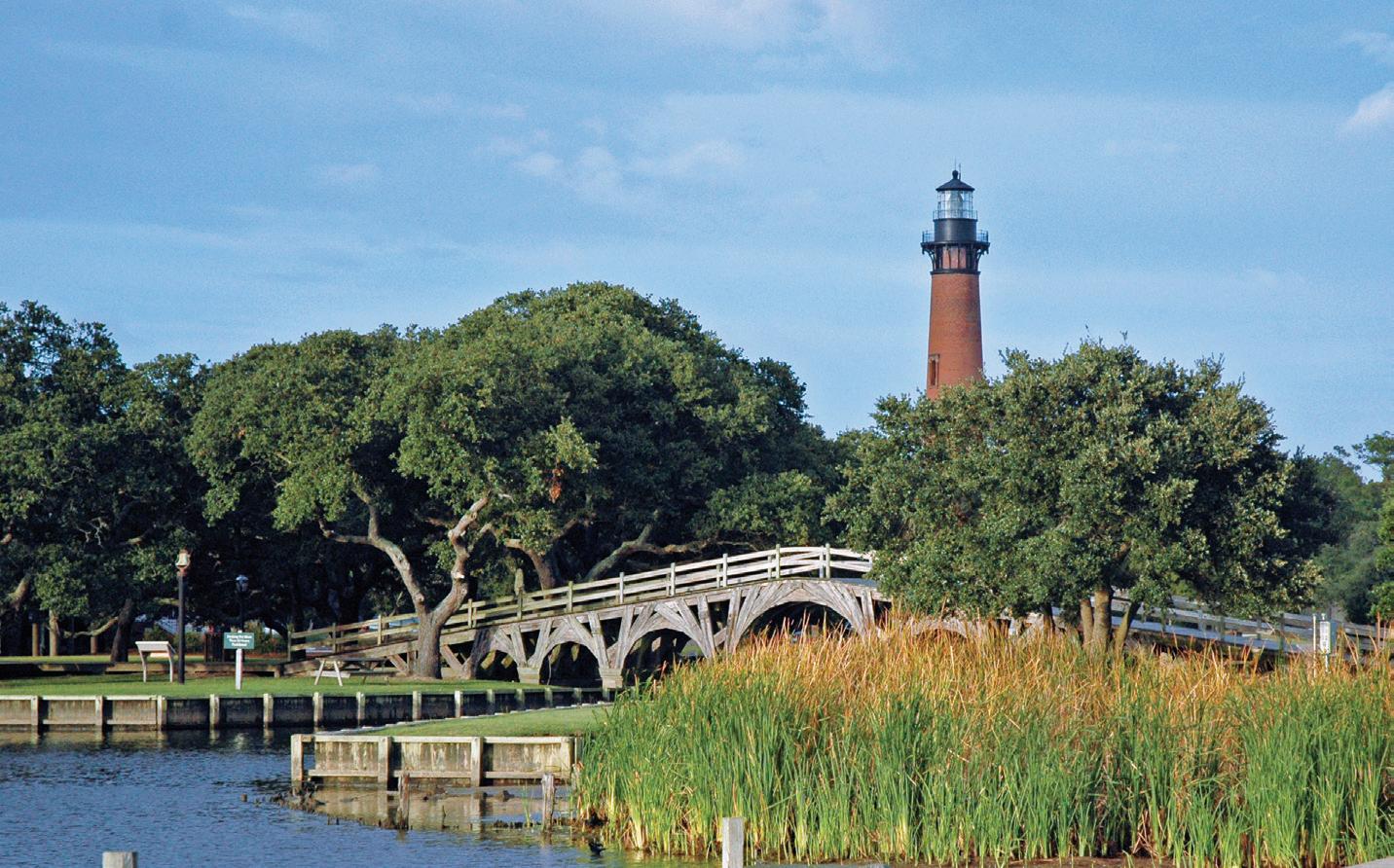 Here is a place defined by water, where the Atlantic Ocean waves spill onto white-sand beaches and eyesoothing vistas of the Currituck Sound marshland are found at every turn. A place that paces to the clock of nature, where time stands still as you watch wild horses roam sand dunes, brown pelicans dive for a fishy meal, and a lighthouse beam sweeps across a starry night sky.