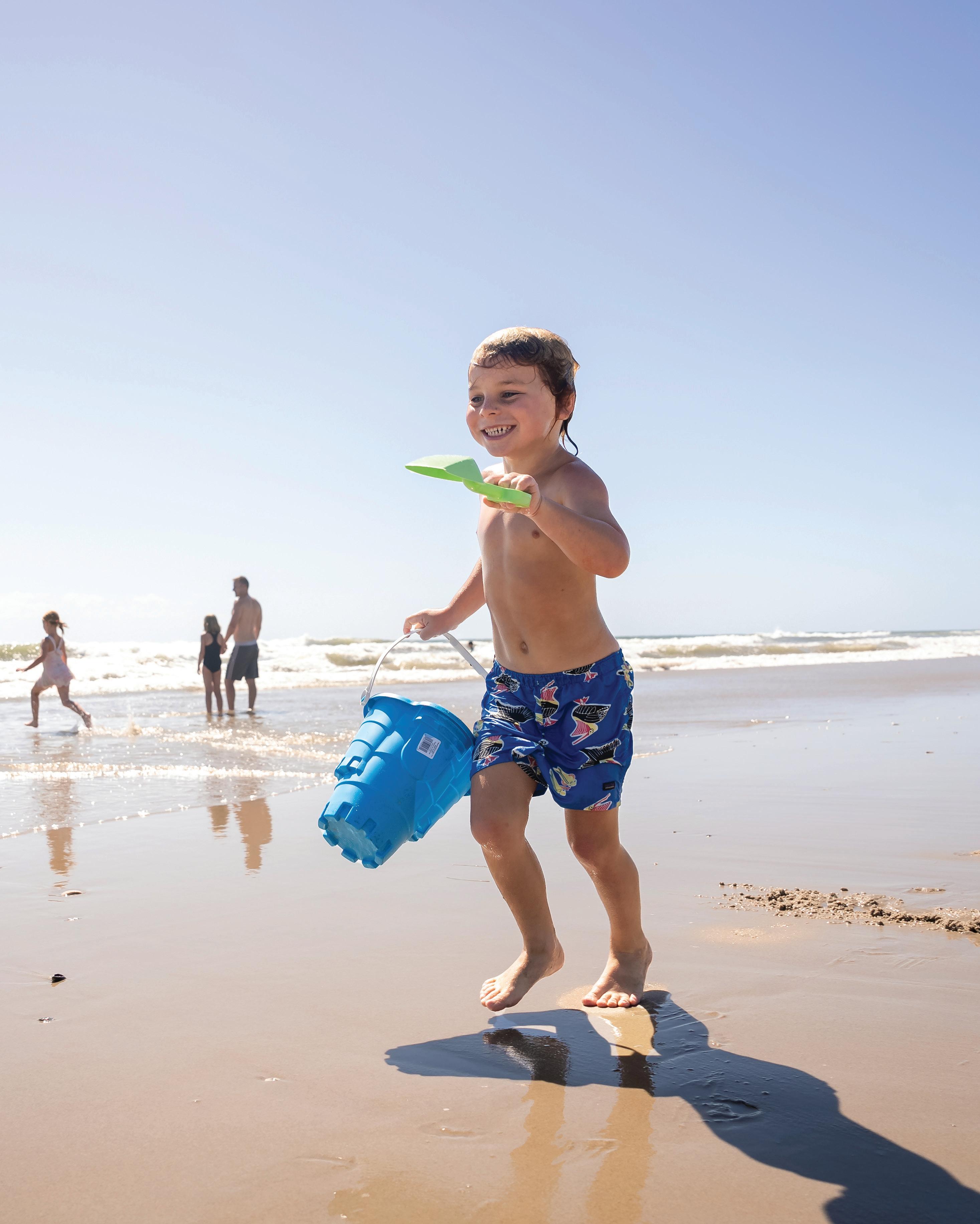 Rip currents are the leading surf hazard for all beach-goers. Particularly dangerous for weak swimmers, rip currents can sweep even the strongest swimmers out to sea. To ensure your family’s safety, always swim near a lifeguard. If you see red flags flying, this indicates that a rip current has been spotted, or due to the conditions in the water, a rip current is likely to occur. (No swimming is allowed when red flags are flying.) If you find yourself caught in a rip current, do not panic; the rip current will pull you away from shore but it won’t pull you under water. Since they are too strong to fight head on, don’t try to swim directly toward the shore. Instead, swim parallel to the shore until you escape the current and can then make your way back to shore.