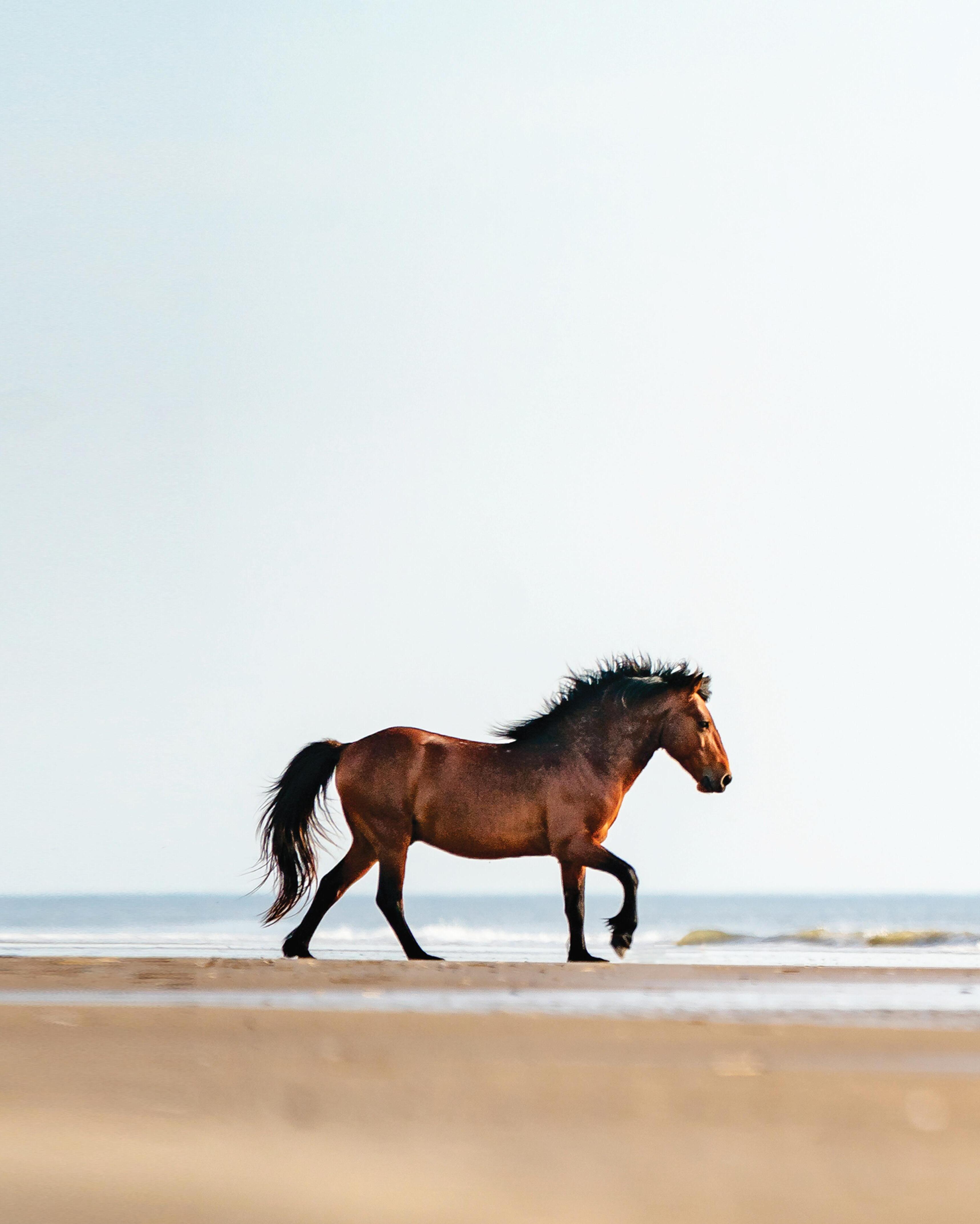 You’re driving on sand alongside the ocean, windows down, the air thick with salty sea spray, when suddenly your heart skips a beat. A chestnut horse with a flaxen mane is walking over the dune line.