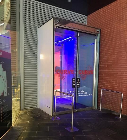 There are two main entrances into the building – Halford Street, by our Green Room Café, and Rutland Street, by our Box Office. Both entrances have a set of glass double doors.