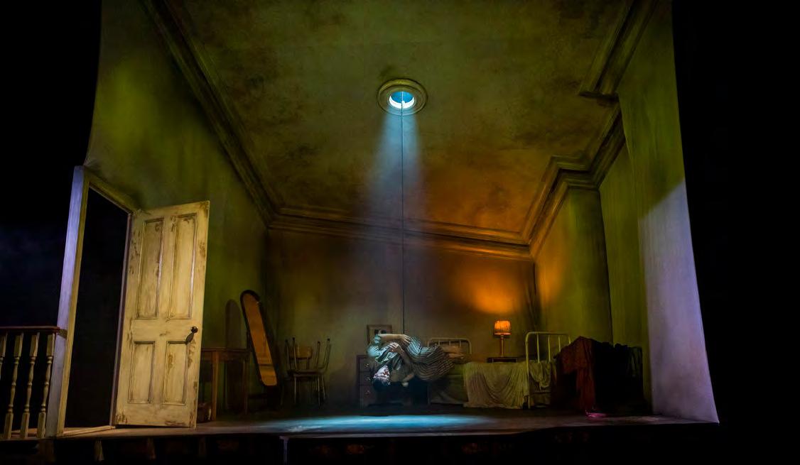 Iwas adamant my production was not going to open with Gregor waking up one morning as a giant insect or ‘a monstrous vermin.’ I did not want to present the transformation as inexplicable but rather as a long process that was allowed to develop unchecked. I wanted to explore the weight of expectation and the corrosive effect it has upon Gregor. It is a physical and emotional breakdown that transforms him from breadwinner to burden. This becomes the catalyst for change in others too. In Grete she becomes his carer, and eventually his judge. She essentially grows up and is seen differently by her parents. Mr and Mrs Samsa’s transformation is more fleeting as we are left with the sense that they return to their parasitic ways, having identified Grete as their new host.