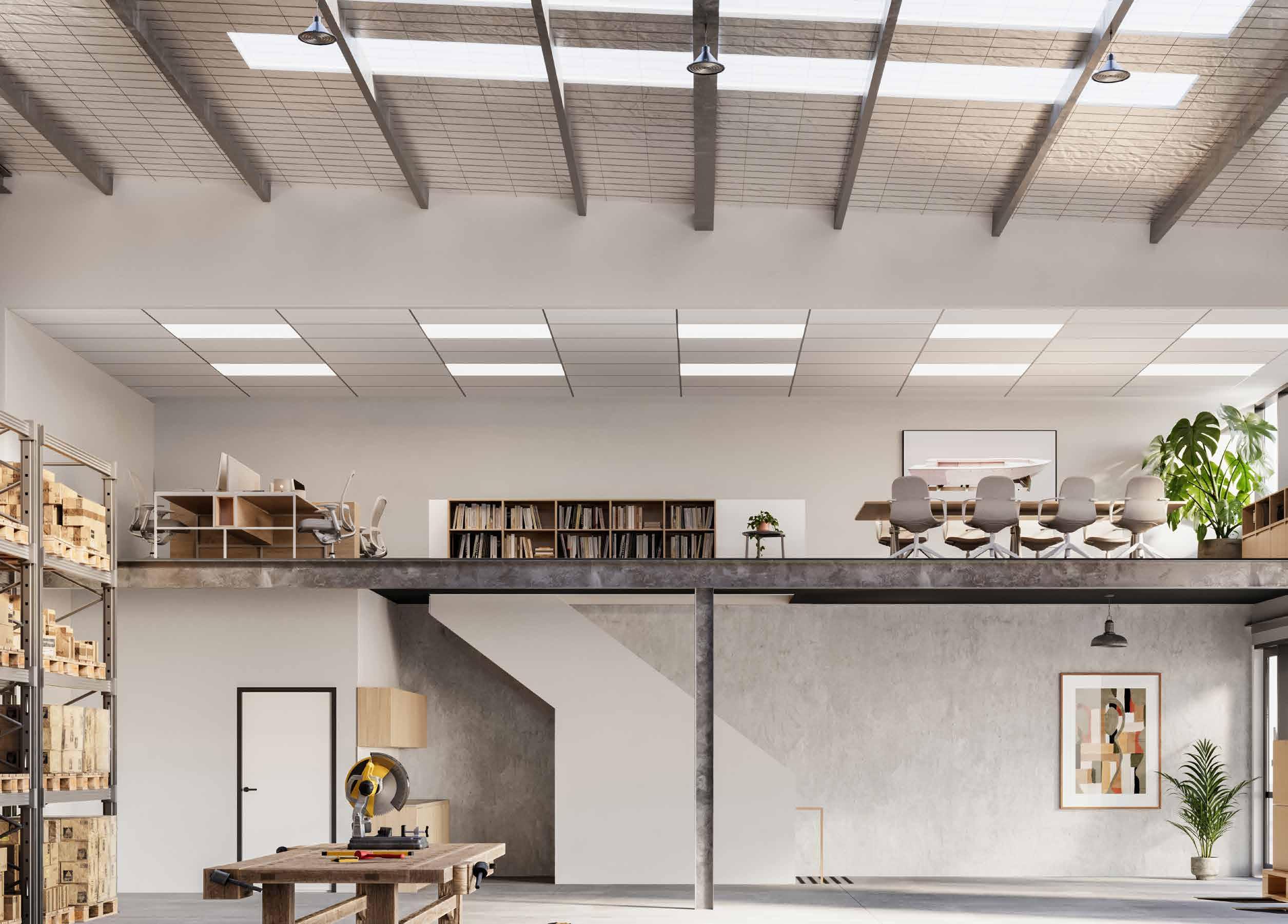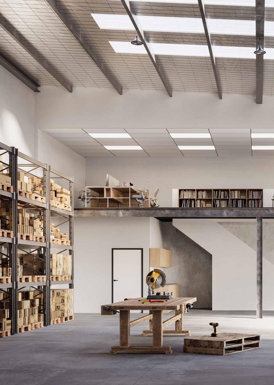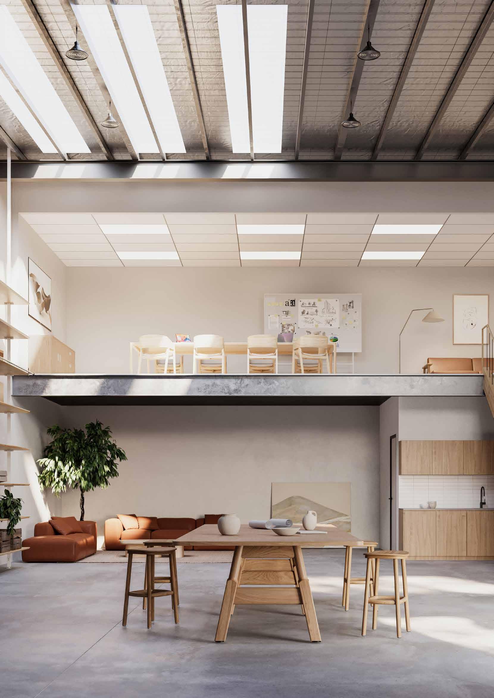 Extensive glazing on warehouse facades allowing abundant natural light