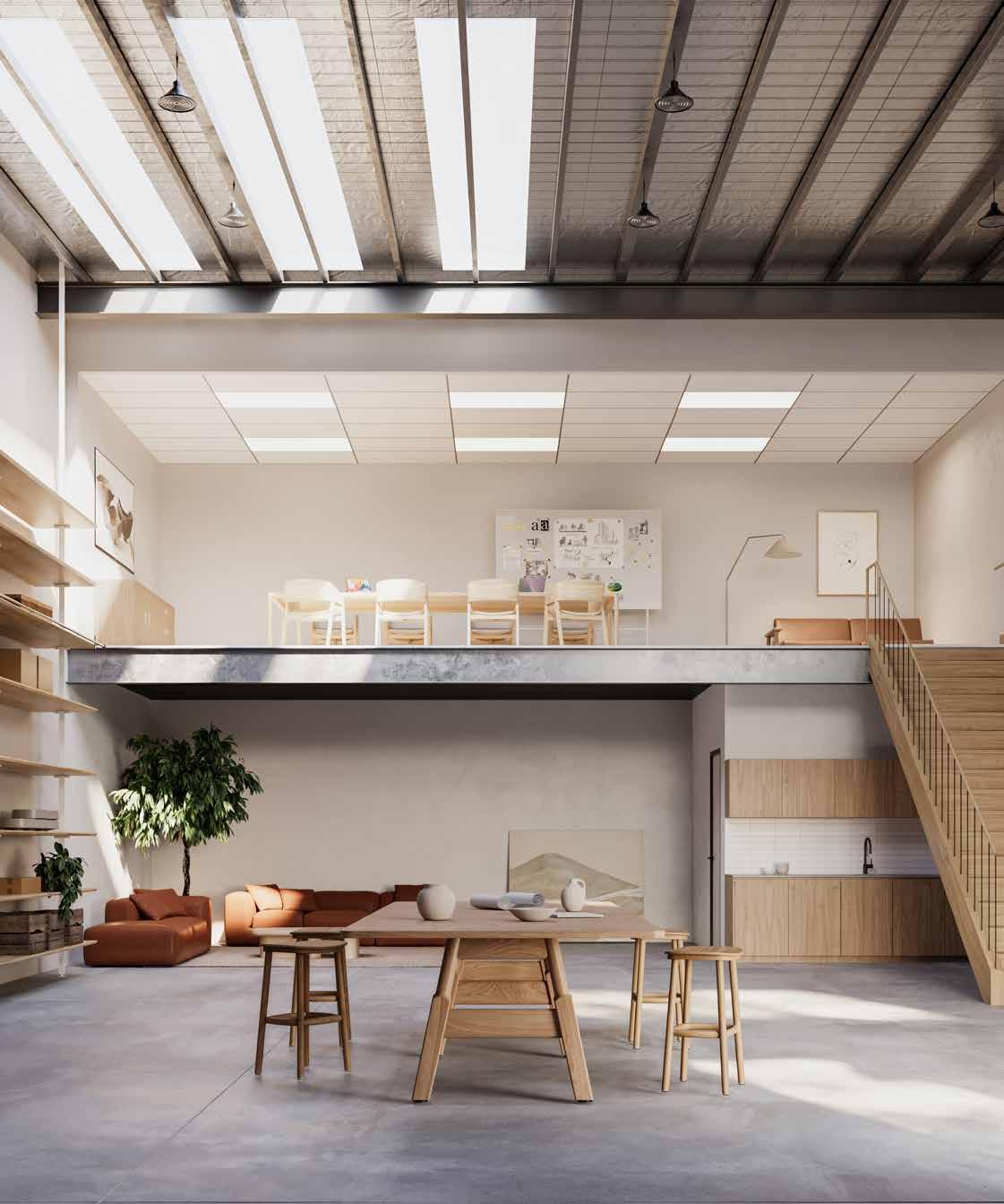 Sleek kitchenette and bathroom amenities included within each warehouse