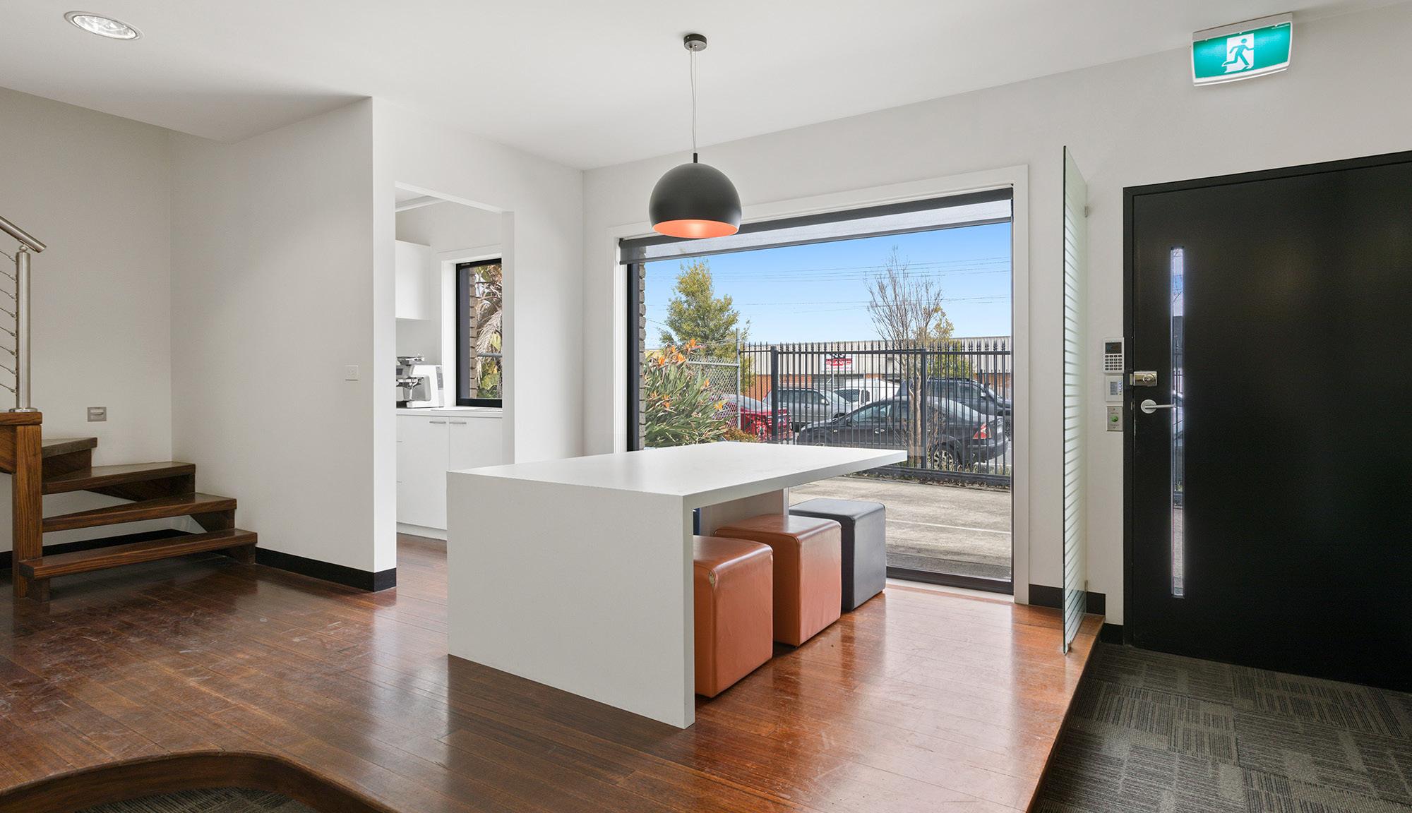 The office component is professionally fitted with built-in workstations, ergonomic seating, and ample natural light throughout. Reverse-cycle air conditioning ensures year-round comfort, while overhead storage, cabinetry, and data cabling create a ready-to-use and efficient workspace. A welcoming reception area with timber flooring and two modern kitchenette provides convenience for staff and visitors.