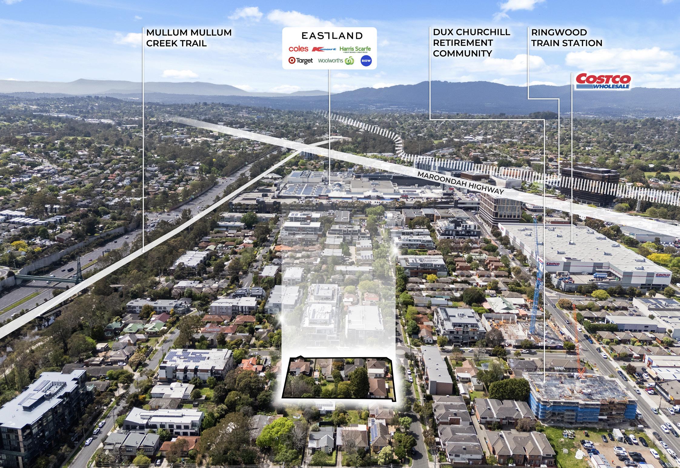 Surrounded by a blend of modern apartment developments, townhouses, and commercial buildings, the property sits in a rapidly transforming pocket of Ringwood — just moments from Eastland Shopping Centre, Ringwood Train Station, and major arterials including EastLink and the Ringwood Bypass.