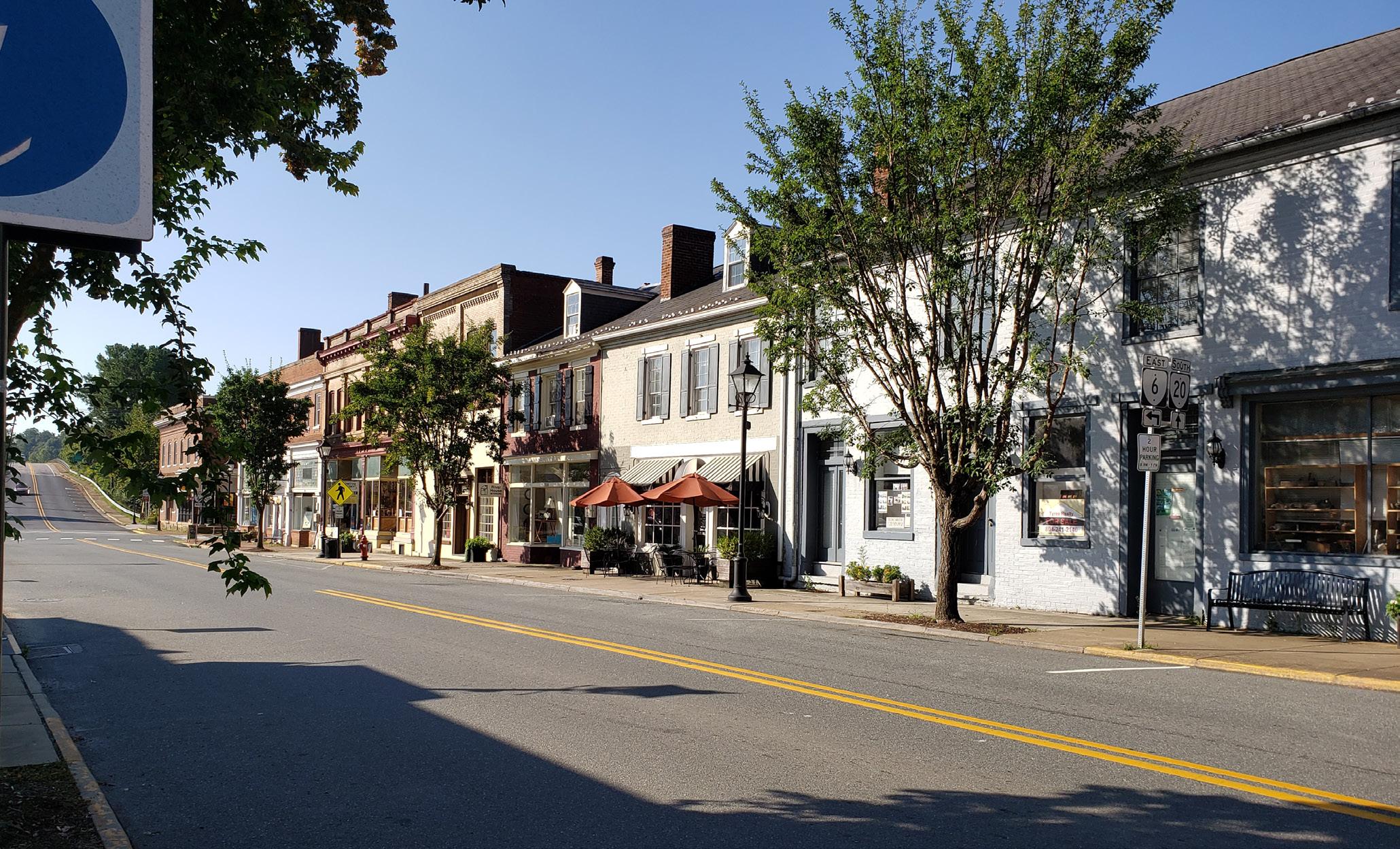 a quiet street in downtown historic Scottsville,