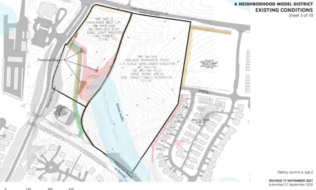 On March 20, 2021, county engineer Frank Pohl and the Army Corps’ Vinny Pero found a stream on the property, according to an email from Pohl obtained under the Freedom of Information Act. By August 31, 2021, Pohl says the map will change because the owner of the parcel—Highlands West LP—had piped a section of the stream.