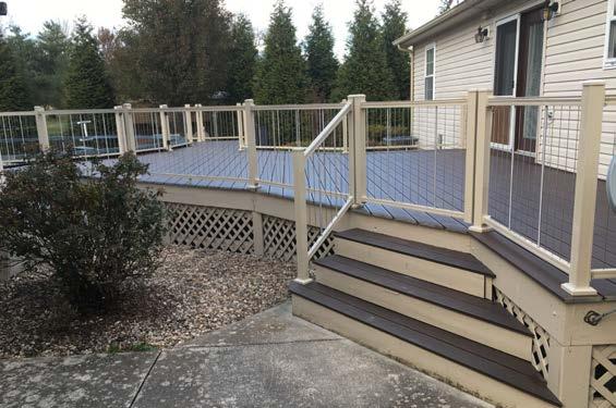 E-mail us at caite@c-ville.com. 16 JULIE THOMAS BLUEPRINT 11 Fifth wall Jordan Heres sells art for an unexpected location. Round and round 13 Peter Johnson Builders’ waterinspired loft renovation. News & views 14 Southwood’s new homes, the CODE Building wins big, and more. Small packages 16 A local builder creates a flex space that promotes play. Light box 18 A shoji-style shed and greenhouse project in the city. Little lodger 22 In Scottsville, an unexpected rental with a luxurious style. REAL ESTATE 35 How to choose An expert helps: condo vs. townhouse HOME SWEET HOME 38 Who needs a formal dining room, anyway? 28 Draft Avenue Stuarts Draft, VA 434-244-3556 www.dutchway.com Established 1995 Established in 1995 27 White Picket Trail Mt. Crawford VA. 540-564-1322 www.dutchway.com Free estimates • Vinyl • Fences • Decks • Railings Fences | Decks | Railings | Porches Arbors & Pergolas | Handicap Ramps Vertical Cable Railing gives you a clearer view