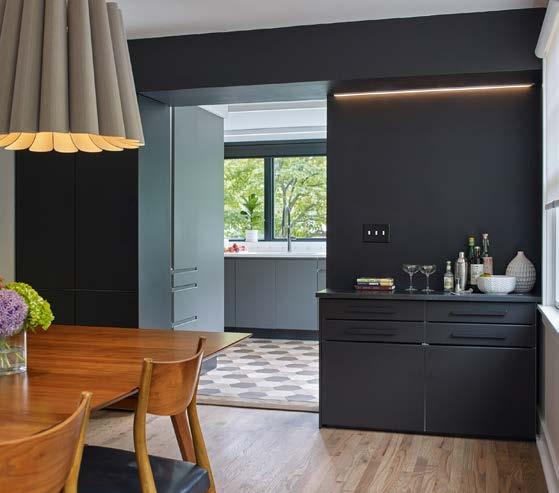 The space is sleek, but the stars of the show are details you can’t see. Green Mountain has an extensive interior cabinetry design process that starts with the clients taking a complete inventory of their kitchen items, accounting for every pot and pan, spatula and spoon. “It can be painful for the clients, but so worth it when you go to put your things away and there is space for everything,” says McCall. The design team then considers the list, along with factors like how frequently the family uses the kitchen, how they move within it, what they use most when cooking, and their possible future needs. They pay particular attention to existing pain points—where do family members run into each other? Which drawer is a black hole for
