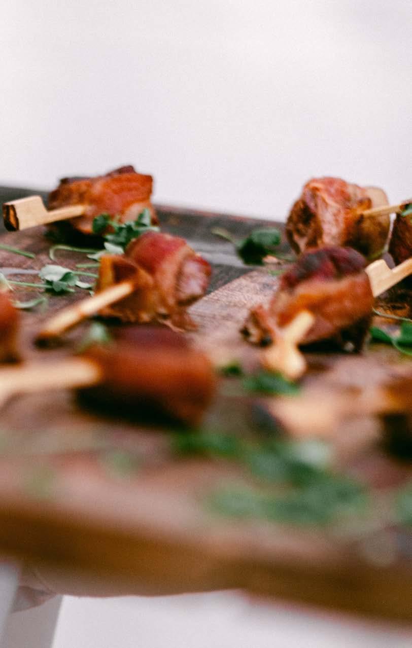 director of The Local. “We see a lot of fusion foods—Filipino, Indian, Hispanic, Ethiopian— depending on the couple’s background or their experiences.” Meredith Jackson, assistant director of sales at Harvest Moon, says that for guidance, she often starts out by asking couples what restaurants they enjoy.