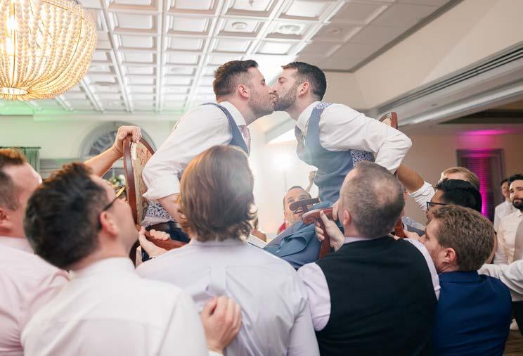 A close second? The dance floor. The grooms ended the night with a slow dance to “Last Dance,” their wedding guests gathered in a circle around them. Then the beat dropped.