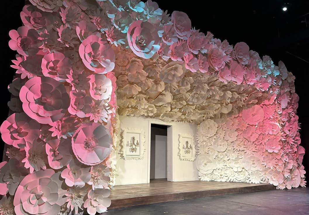 It took 30 volunteers 390 sheets of paper to create the nearly 400 handmade flowers that grace the stage of Live Arts’ Emma Kate Hamill’s lively take on the Jane Austen classic opened on Friday, March 6. Volunteers ranging in age from 6 to 80 spent more than 300 hours creating the set for the show, which runs through March 22, bringing Austen’s matchmaking comedy—and several gardens’ worth of paper blooms—to the stage.