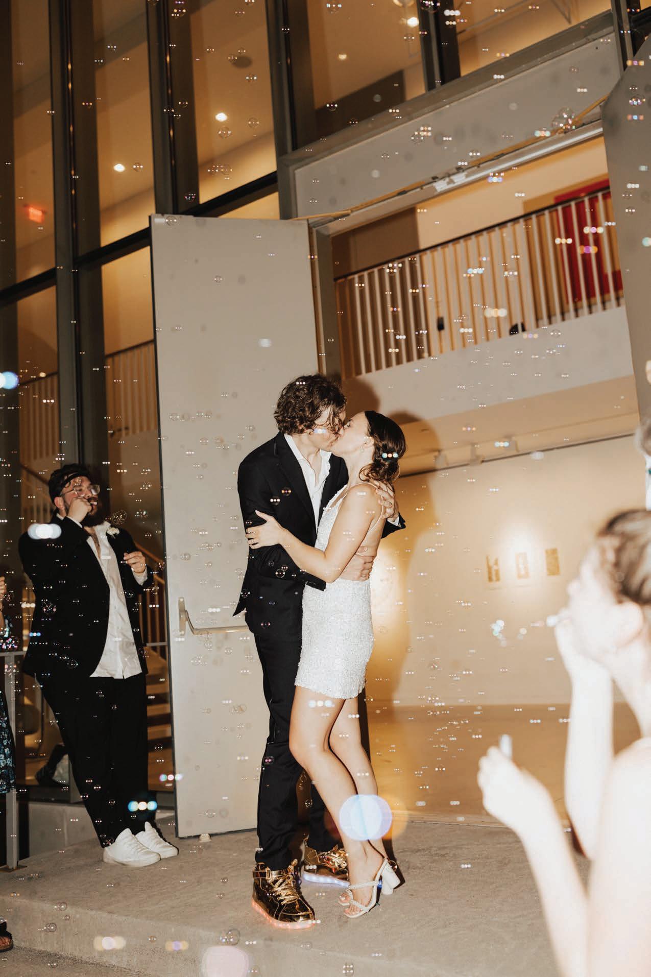 “We wanted to try something new,” says Thomas. “We always have the most fun at the reception, so we figured we’d basically make that the whole wedding with a quick ceremony at the top.”