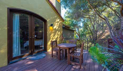 nature in the backyard. On a recent girls’ trip, we were welcomed to this serene abode by abundant hillside wildlife, including wild turkeys—with babies in tow and a magnificent male strutting his feathers in an impressive fan—a doe and her two spotted fawns, skunks, lizards and sparrows, all adding to the fairytale feel of the surreal surroundings.