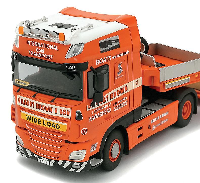 Search Impex has released a 1:50 scale DAF XF 460 Super Space 4x2 tractor unit with Nooteboom Euro PX 2-axle low loader, customised in the eye-catching and traditional style livery of Cumbriabased haulier Gilbert Brown & Son Ltd. Gilbert Brown & Son Ltd, founded in 1973 in Hawkshead, Lake District, is a small, family-run haulage company. It began with two flatbed trucks transporting timber but soon expanded into boat