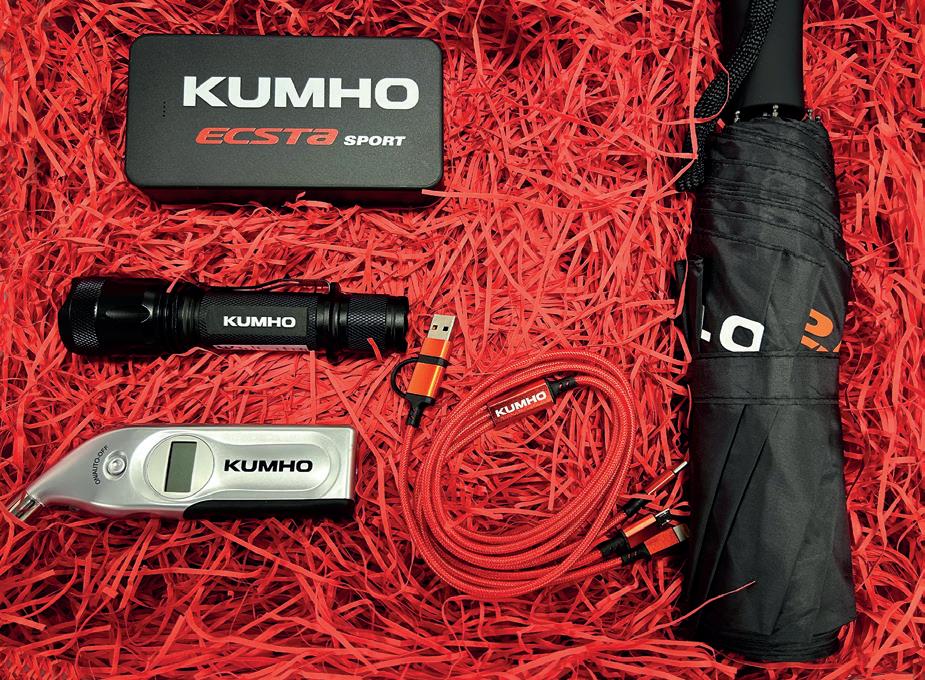 This month once again we are offering a fabulous box of goodies from Kumho Tyre in our easy to enter competition. The box contains a charging cable, umbrella, torch, pressure gauge for tyres and a high-capacity power bank.