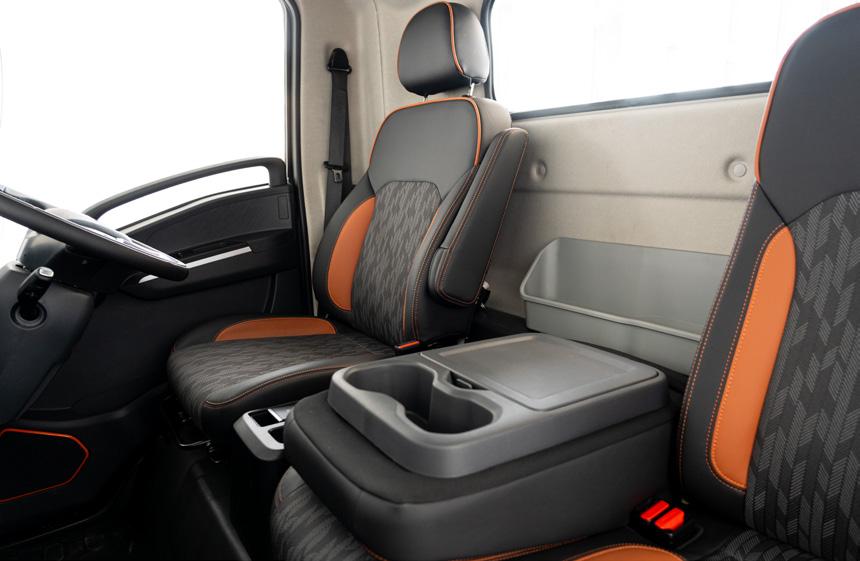 Farizon has also introduced a genuinely distinctive body design feature. The absence of a traditional B-pillar on the passenger side allows notably improved access through the side loading doors. For operators working in tight urban environments or frequently handling bulky items, this wider, less obstructed opening could prove extremely valuable. The engineering solution is complemented by the unusual placement of the passenger seat belt, which is mounted within the door itself. It is an unconventional approach, but in practice it works neatly and contributes to the improved access.
