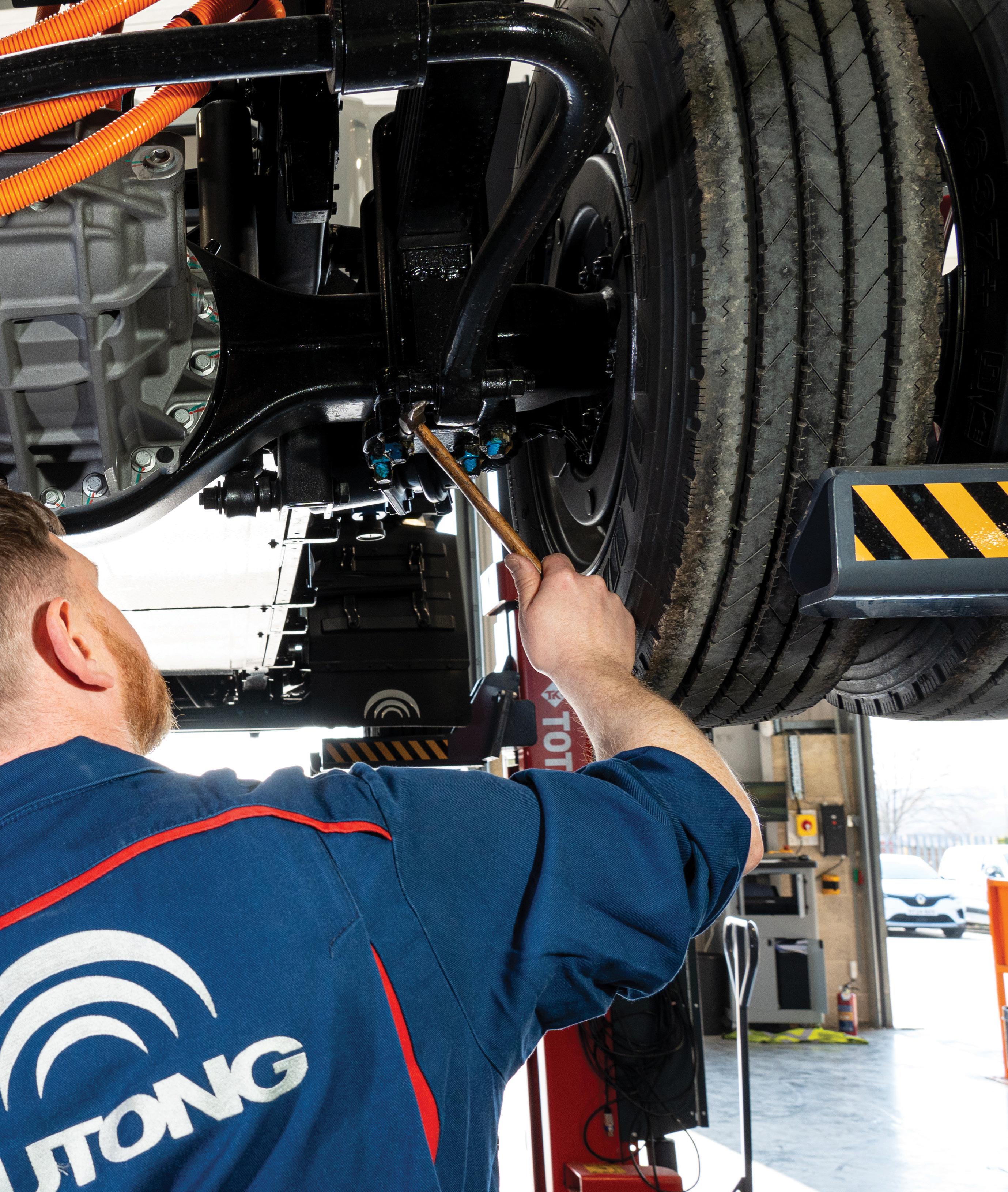 The e-axle designed enables TE7’s LFP (Lithium Iron Phosphate) battery pack to be fitted centrally within the chassis, and this works with a sevenin-one motor controller positioned beneath the cab. According to Yutong, this configuration supports intelligent energy management which helps to deliver up to 15% more range under equivalent working conditions when compared to less optimised systems. It also increases protection for battery components. Lightweight construction and an aerodynamic cab design further contribute to the TE7’s reduced overall energy consumption.