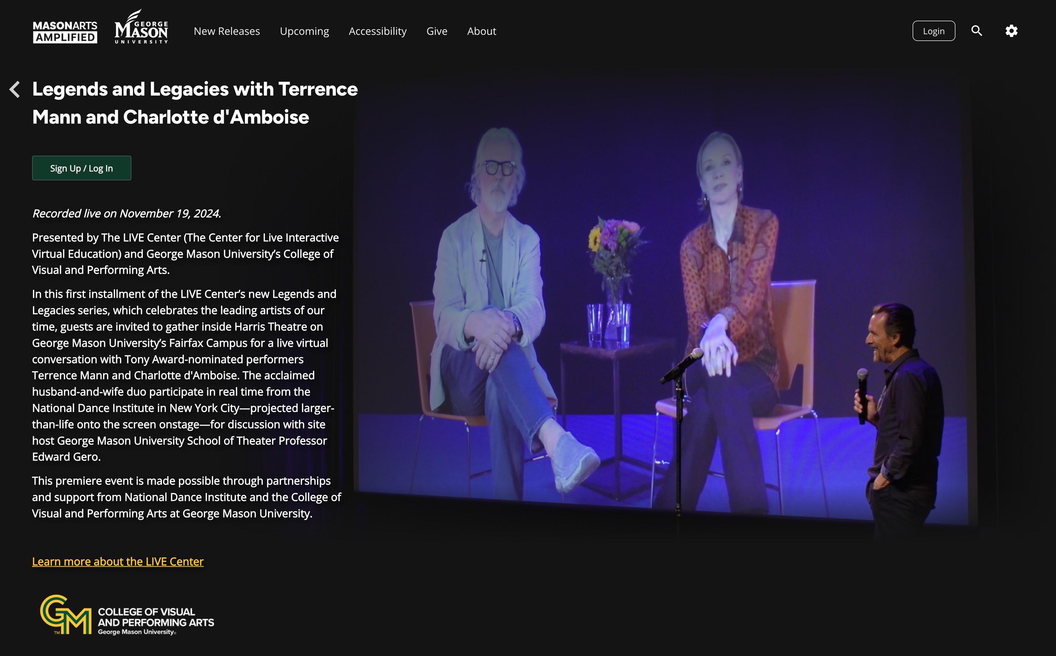 Mason Arts Mission: Mason Arts facilitates a shared pursuit of creative and academic discovery, inspiring a broad population of learners and patrons toward lifelong engagement in the arts.