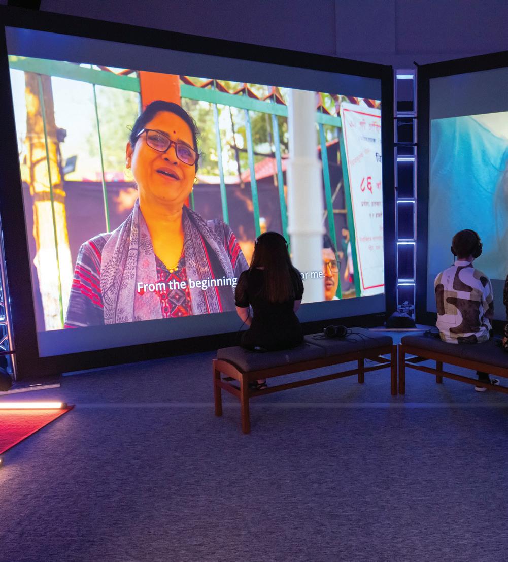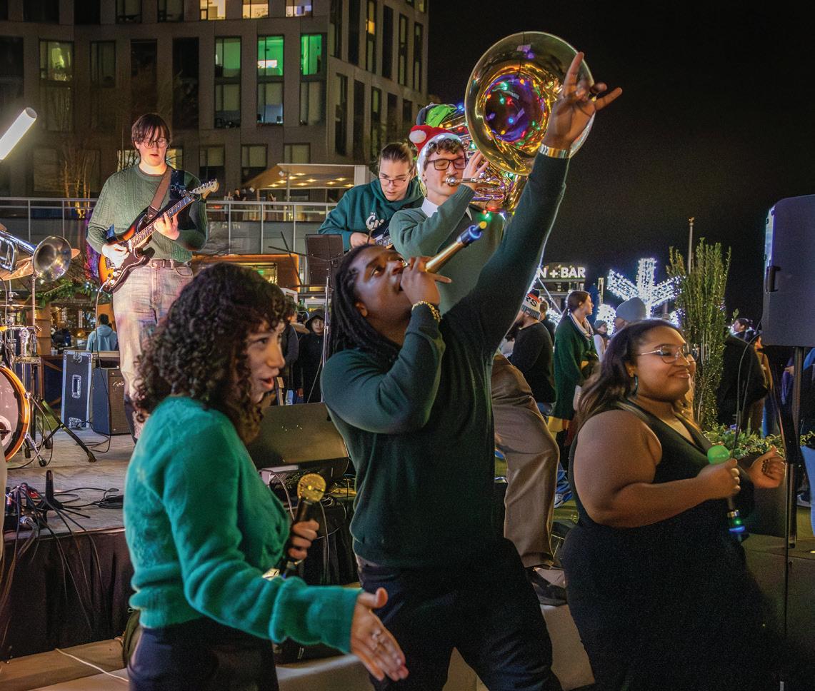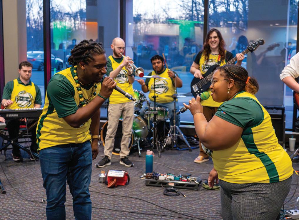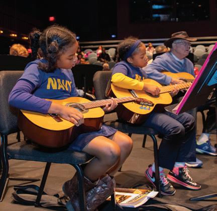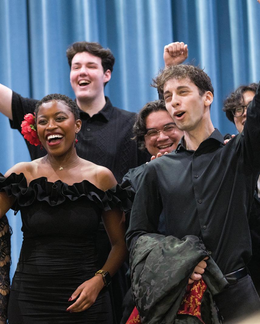 On this page, counter clockwise: Student work was displayed during Virginia Opera’s Loving v. Virginia Photo by Laura Mertens; Opera as Social Change Honors College class taught by Dean Rick Davis; Rachelle EtienneRobinson, Arts Management student, co-curated Black Dress II: Homage at Pratt Manhattan Gallery; Instrument Petting Zoo and Caleb Matthews at Arts Alive! held at the Hylton Center, Photos by Carol DeVany