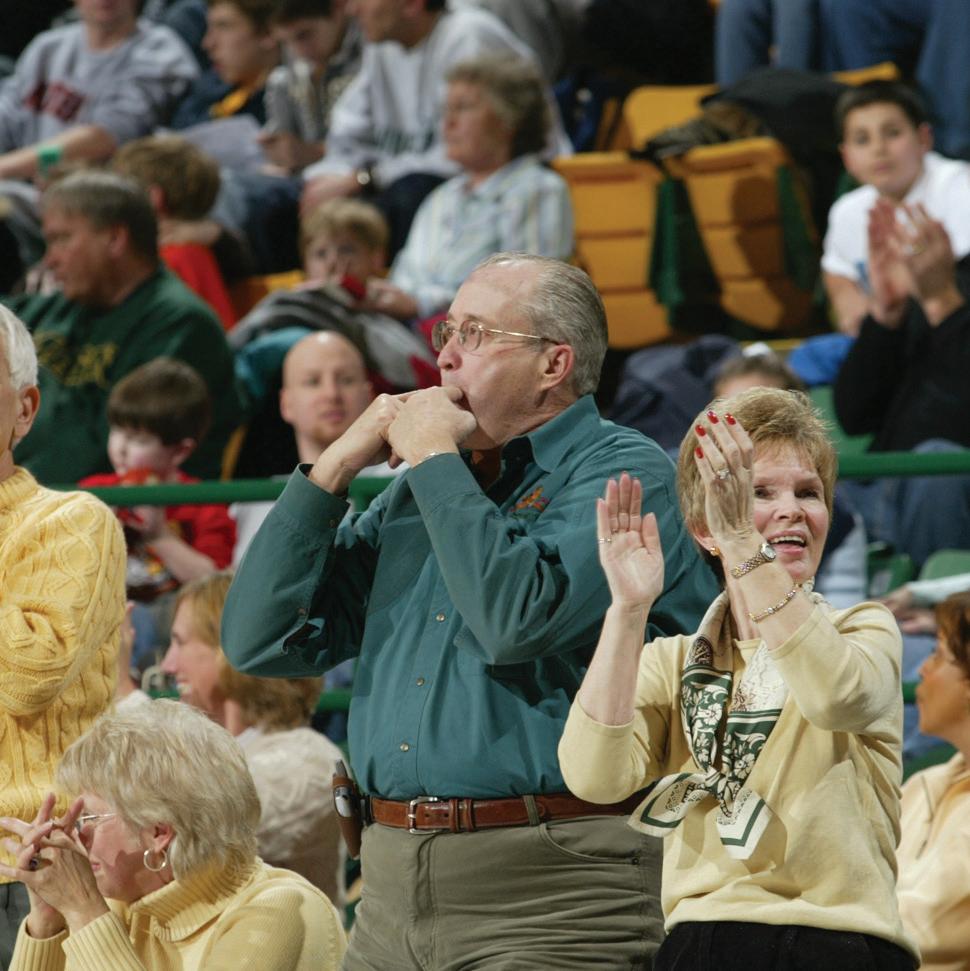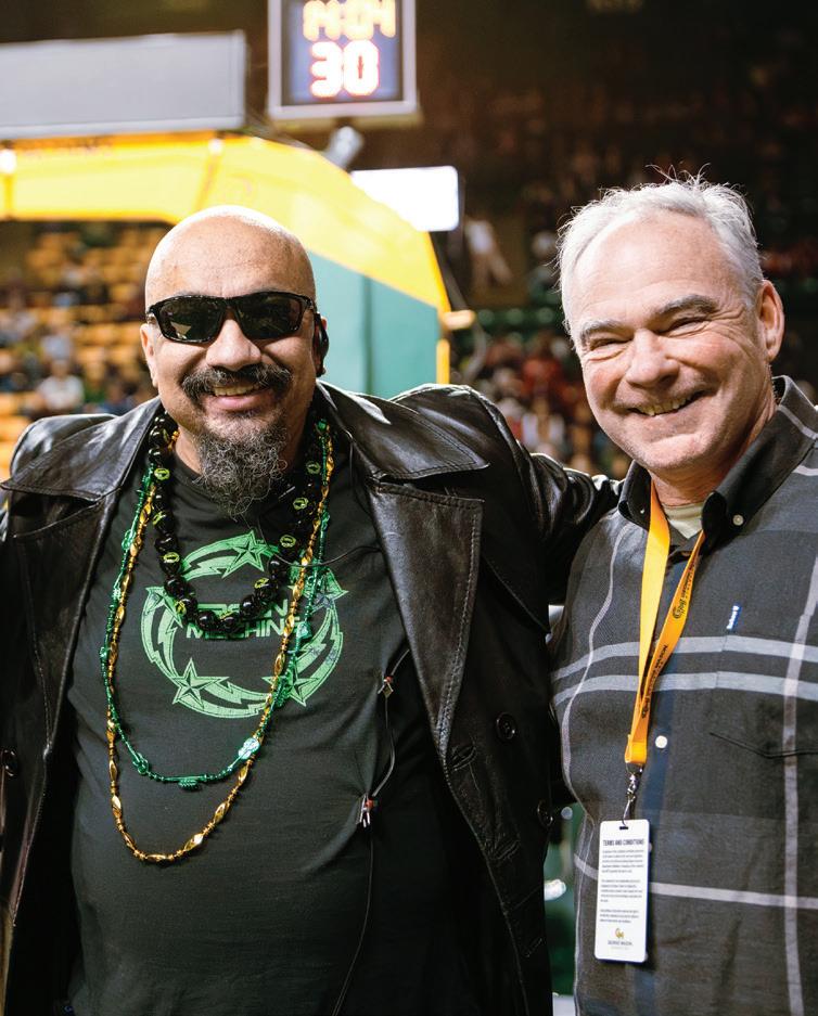 Doc Nix with Virginia Senator Tim Kaine, who brought his harmonica to EagleBank Arena, performing alongside George Mason's Green Machine during a home basketball game.