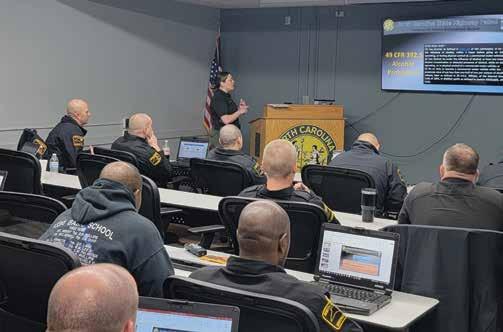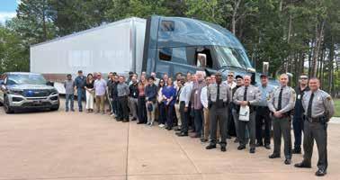 NCSHP CVE Section members presented at the Volvo Group North America Safety Recall Summit. The members in attendance were Capt. T. G. Wilson, 1st Sgt. B. D. Vick, Sgt. M. G. Conley and Tpr. W. S. Skinner. Sgt. Conley conducted a traffic safety information presentation on the 37-step North American Standard Level I Inspection while Tpr. Skinner demonstrated the inspection. This is NCSHP CVE Section’s second year presenting at the summit. n