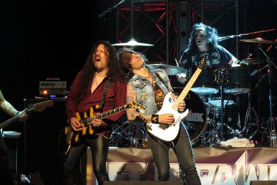 <CV WW> Tell our readers who is in the band and their roles because you have an impressive group of artists… Stacey Blades: Let It Rawk is an all-star 80‘s metal review featuring quite a few different guys from the genre. From time to time we have a rotating line up. So we have me on lead guitar, Stacey Blades. We have Oz Fox of Stryper on lead guitar, Jeff Duncan from Armored Saint on lead guitar, Sean McNabb from Dokken on bass, Eric Brittingham of Cinderella on bass, Scott Coogan from Brides of Destruction and Ace Frehley on drum sand Jimmy D‘Anda of Bullet Boys on drums, and we have Jamie St. James from Black N Blue and was also in Warrant for four years on vocals. Not all those people are on stage at the same time, but we‘ll mix it up from time to time because everyone else is in their significant bands.
