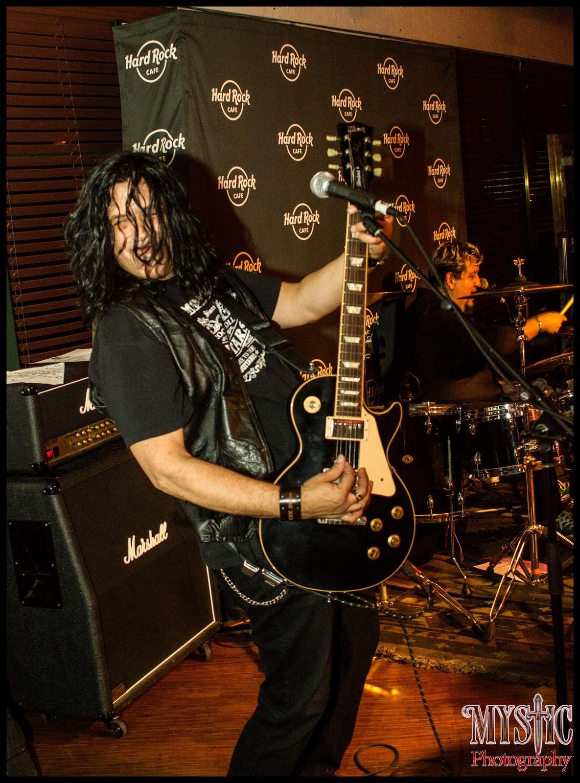 Mark took time off from playing live a couple years after getting married to his wife Jennifer in 2000. He continued to practice and did some studio work. He was lured back into playing live at the Monsters of Rock initial show at Dante's in 2012. Hooked up with Larry at the 3rd MOR show in February of 2013, which eventually led him to Earth to Ashes.