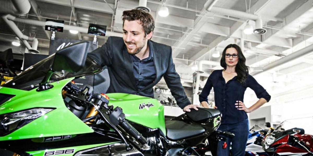 economy, perhaps you should point out that motorcycles save you money, both up front and in the long term. To start with the obvious, there’s the typical price of buying new. While a top-of-the-line 2013 Kawasaki ZX-6R will set you back $12,699, a stock Toyota Corolla will cost you $16,230. One of these goes 0-60 in a matter of seconds; one makes sure you won’t get laid on a first date. You can often pick up a decent used bike for anywhere between $2,000 and $4,000, or a brand-new entrylevelbikeinthe300cccategoryfor around$5,000. Theonly used car I know that costs $2,000 has a giant dildo attached to the hood, as seen in theveryadeptcomedyIdiocracy. Then there’s the insurance factor.Insuringmybikecostsa grand total of about $200 per year.