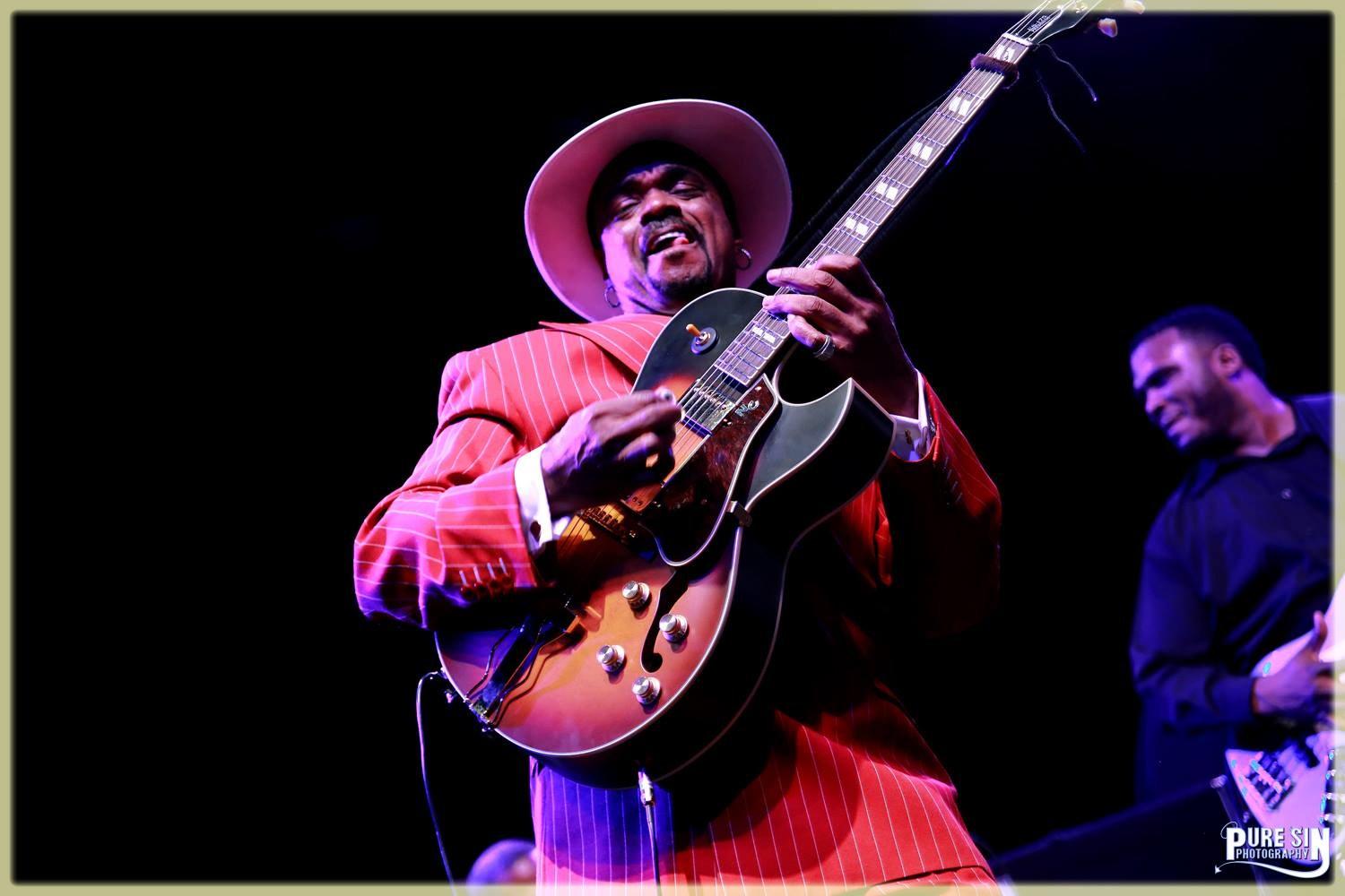 Devle Texas presents NAMM JAM 2015 again at the alluring Grove in Anaheim, CA. This year‟s lineup was one to satisfy many different palates. Nick Colionne started it off in perfect debonair style, wearing a red suit, complementary red shoes and a white fedora with a black band. Nick was playing a gorgeous Epiphone ES-175, and great at engaging the crowd. During his song „I‟m Super Bad” a younger long haired rocked guy was completely getting into it, hair was flying and an older AfricanAmerican gentleman next to him turned looked at with him with a bit of a surprised look on his face then he started getting into the music too. It was awesome to see a distinctive older man and a long hair rocker guy grooving together. Nick Colionne came out into the audience singing „What About You‟, getting anyone and everyone to start grooving with a groove train going through the audience. It seemed everyone had a little soul in them, even the hardest metal heads; feet were tapping, heads were nodding and fingers were snapping - all were having a great time.