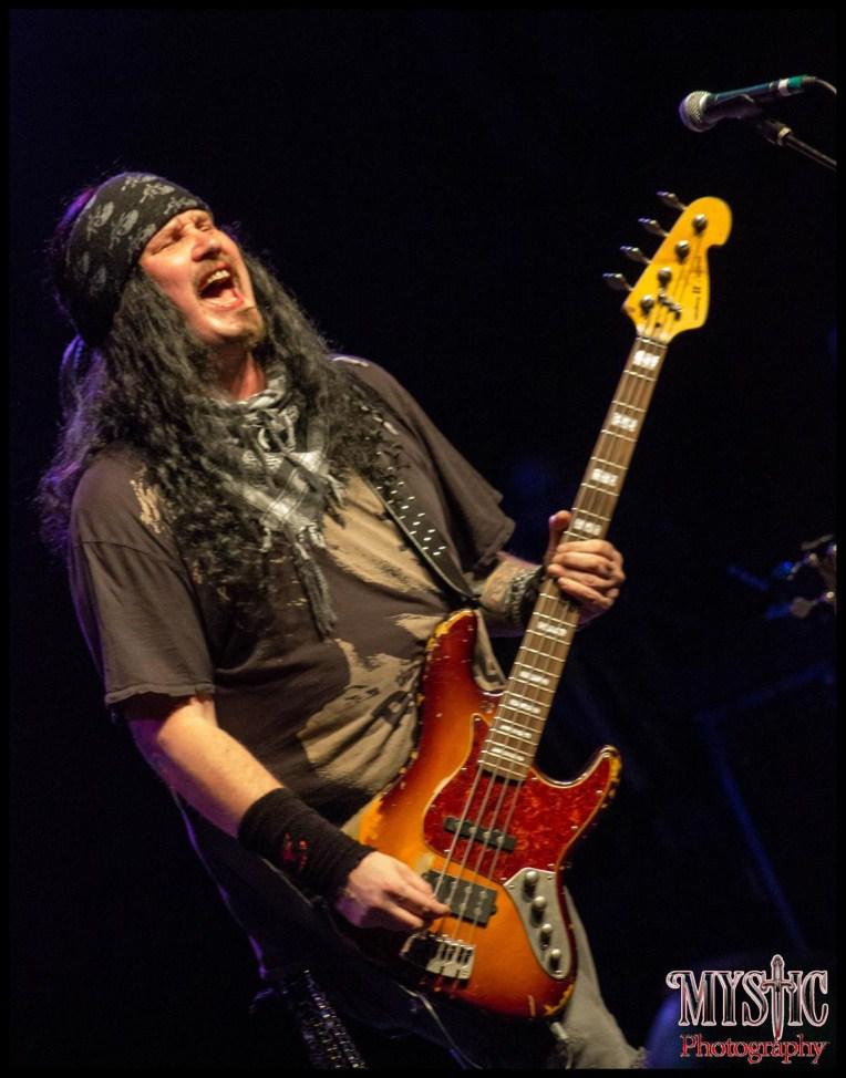 Metal Allegiance was a showcase of star studded super heroes; Scott Ian started the set off with playing the guitar with Mastodon‟s Bass/ Vocals player Troy Sanders, Anthrax members Bass Player Frankie Bello and Drummer Charlie Benante playing „March of The SOD/SGT D & The SOD‟. The song was the first of a 27 song setlist, the beginning of some hardcore thrashing and hardcore people being thrown around all enjoying every minute of it. The setlist included „Freddy Krueger‟, „Rapid Fire‟, „Victim of Change‟, „Fast As AShark‟, „Balls to The Wall‟, „Into The Void‟, and „Heaven And Hell‟. The remaining all stars of Metal Allegiance were Mark Osegueda DeathAngel, Andreas Kisser Sepultura, Rex Brown Kill Devil Hill/Pantera, Gary Holt Exodus/Slayer, John Tempesta The Cult, Chris Broderick Megadeth, Chuck Billy Testament, David Ellefson Megadeth, Mike Portnoy Winery Dogs/Dream Theater, Alex Skolnick Testament, Steve Souza Exodus, Jimmy Bain Rainbow/Dio, and Kyle Sanders Hell Yeah. Brothers Troy Sanders and Kyle Sanders played together in „Running with the Devil‟, „You Really Got Me‟ and „Atomic Punk‟. Alex Skolnick did an amazing rendition of „Eruption‟ with David Ellefson and Mike Portnoy which lit the HOB up. The last 3 songs “Cold Gin‟, „Love It Loud‟ and „Highway