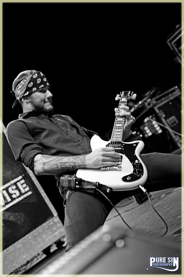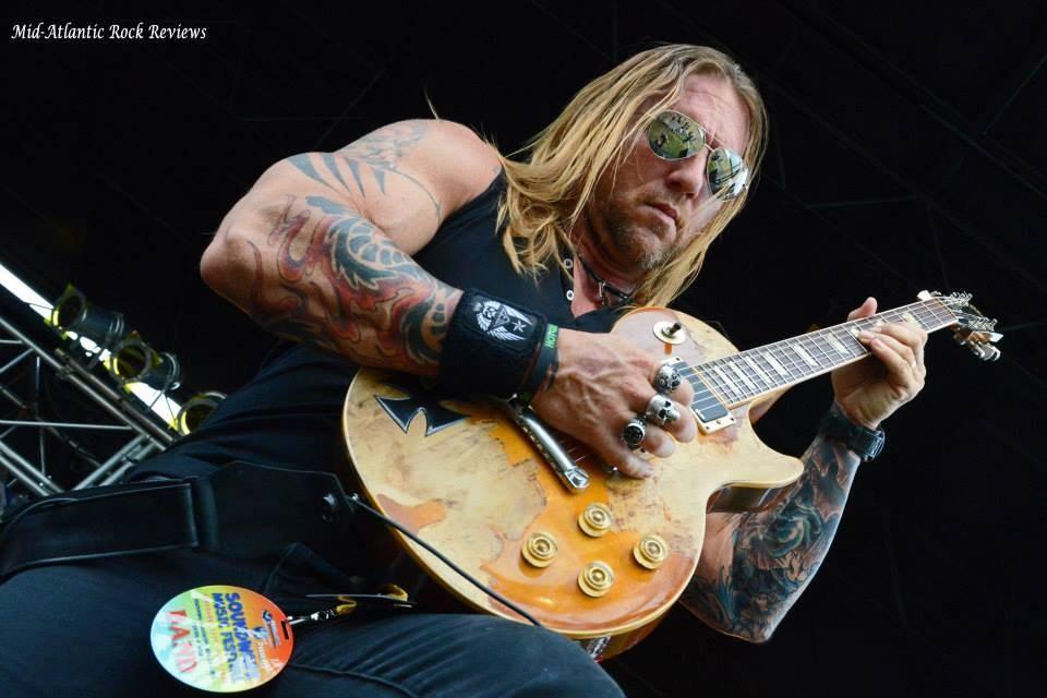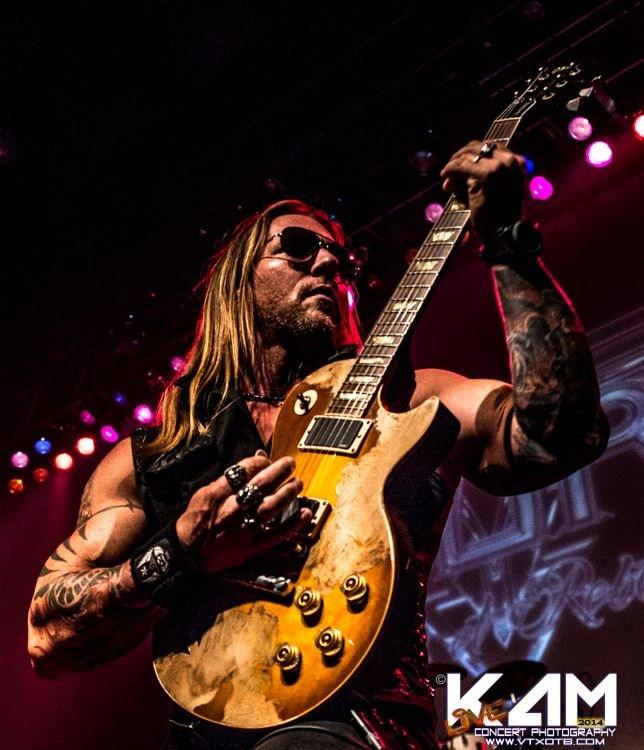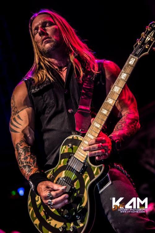Present - TC Electronic Polytune, Boss OD-2 Overdrive, Boss CS-3 Compressor, Dunlop Zakk Wylde Wah, Boss BF-2 Flanger, Boss PH-2 Phaser, Ernie Ball Volume Pedal, MXR Carbon Copy Delay, MXR ZW-38 Stereo Chorus (Into twin highly modified Marshall JCM2000 DSL100 heads that are switched simultaneously via a custom head switcher I had built. The cabs are either matching Marshall 1960 4x12 Cabs or 1936 2x12 Cabs depending on venue. All speakers are Celestion G12T-75)