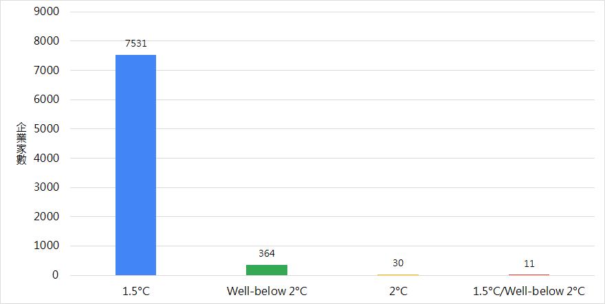 全球企業通過 SBT Near-Term 在不同溫度下的家數分佈
