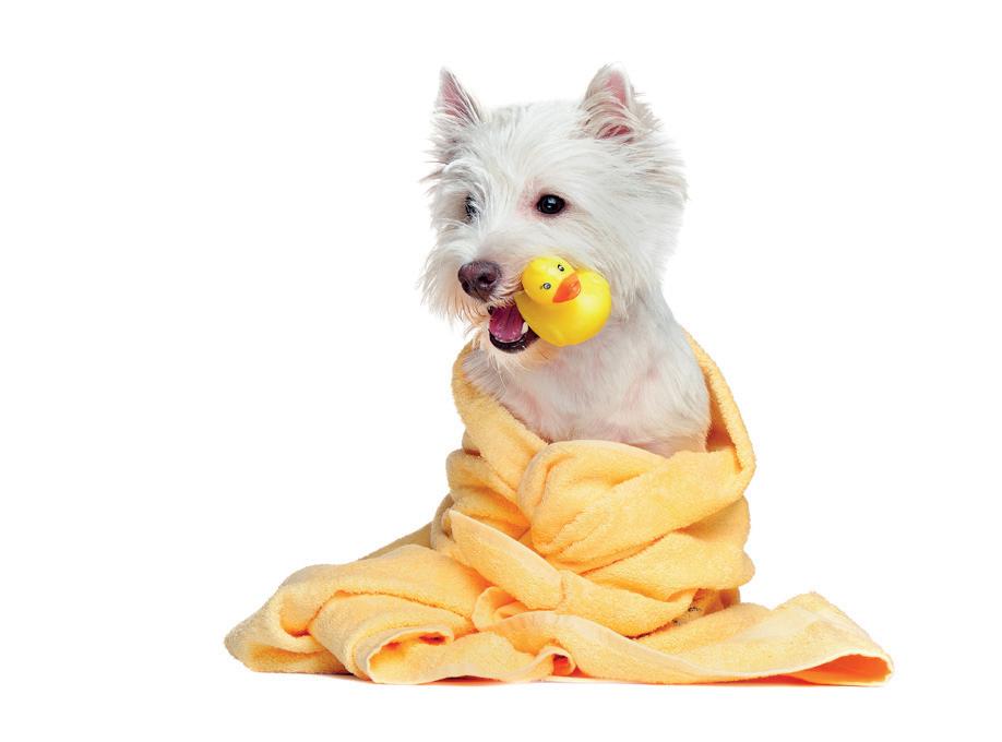 The good news is that dogs do not need as much bathing as you may think. If your weekly bath is a very quick squirt before they are thrashing around like a washing machine, do not stress, a quick weekly squirt may be getting the job done.