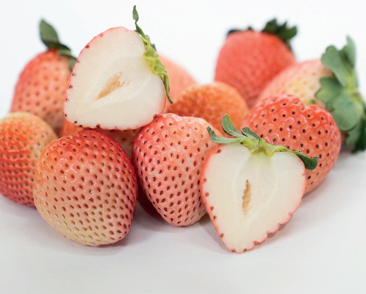 These tasty varieties were developed by crosspollinating a naturally white-fruited strawberry species, which has very small and soft fruit, with regular strawberries.