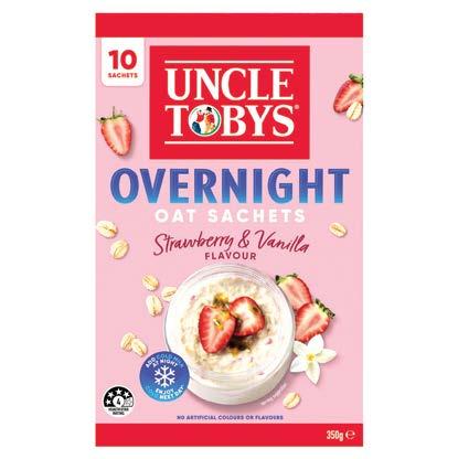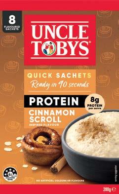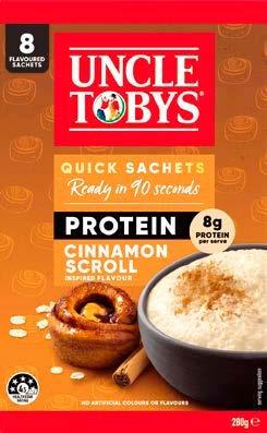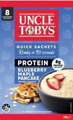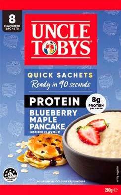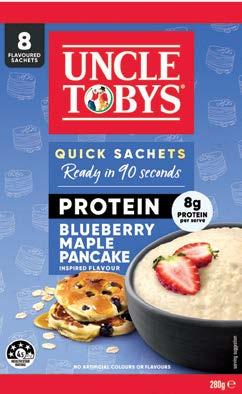 Uncle Toby’s new range of Quick Sachets are a natural superfood, made from 100% Australian wholegrain oats. They're a source of fibre and contain beta-glucan, which helps lower cholesterol reabsorption.