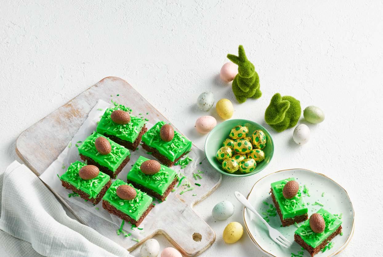 • To secure Easter egg decorations, dip them in a small amount of melted white chocolate with 1-2 teaspoons of Copha.